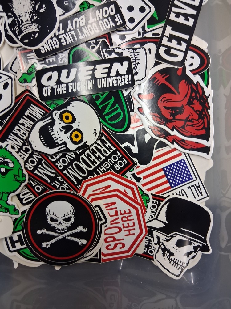 The product is a lot of 100 different vintage stickers and decals, specifically geared towards bikers and skaters. These stickers are hard to find and are perfect for personalizing various items such as skateboards, bikes, and any outdoor sports equipment. With a variety of designs and themes, this random lot of stickers offers endless possibilities for adding a unique touch to your gear. These stickers are waterproof sun proof and will not fade. these are high quality vintage motorcycle helmet stickers. Please Review all photos carefully the ones in the photos are just an example of what you'll receive. Check out my other awesome items available we also offer fast and friendly shipping thank u for your support