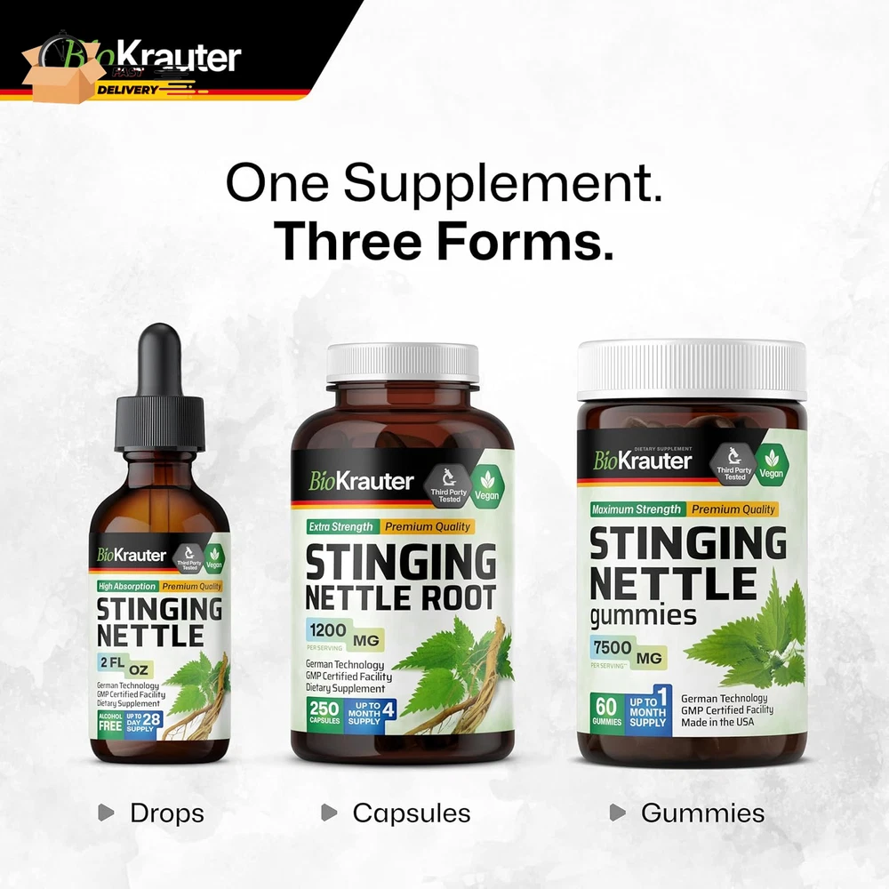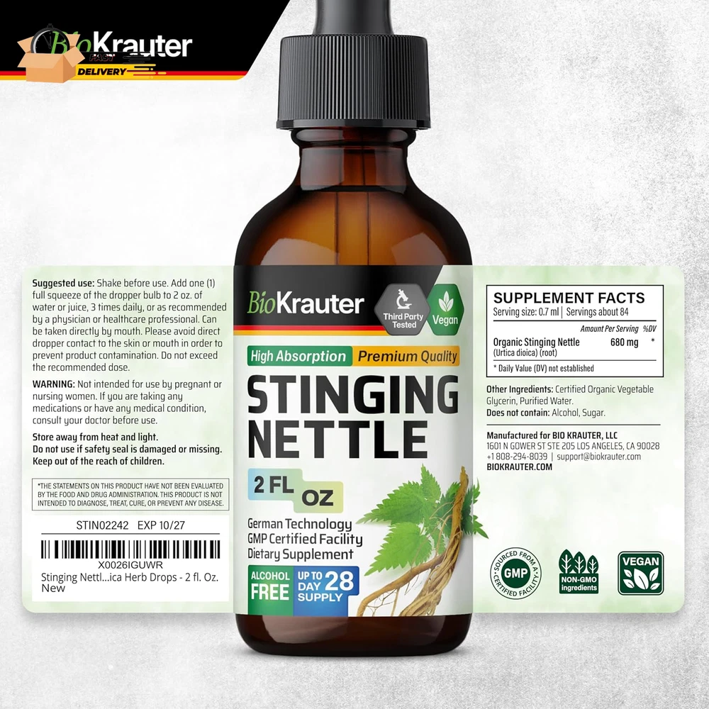 Store New Arrivals Add to Favorite View Feedback Contact Stinging Nettle Root Liquid Extract 2 Fl. Oz. - Organic Urtica Dioica Extract D Description Item Package Quantity 1 Item Form Drop Package Information Bottle Is Discontinued By Manufacturer No Package Dimensions 5 x 1.65 x 1.61 inches; 4.97 ounces Size 2 Fl Oz (Pack of 1) Stinging Nettle Tincture for Urinary Health: BioKrauter Stinging Nettle liquid drops, made from Urtica Dioica (commonly known as stinging nettle), support urinary health. Vegan & Non-alcohol: Our Nettle root tincture formula is vegan, non-GMO, and free from alcohol, artificial colors, and flavors, designed to align with a wide range of lifestyles. No Bitter Taste: Our nettle root extract liquid is crafted with glycerin, which naturally eliminates bitterness, ensuring a smooth and pleasant flavor without the need for any added sugars. German Technology: We utilize German technology to craft a stinging nettle liquid supplement that naturally supports your urinary system. Made with only three simple ingredients: water, glycerin, and nettles—this formula provides up to 98% absorption. Usage Instructions: Shake well before use. Our stinging nettle root extract is easy to use—simply add a few stinging nettle drops to your favorite beverage or directly under the tongue. Avoid touching the dropper with your lips or tongue. Product Description 1 Benefits 2 Technology 3 How to take 4 Facts 5 All forms Add to Cart Add to Cart Add to Cart Add to Cart Add to Cart Customer Reviews 4.4 out of 5 stars 631 4.5 out of 5 stars 840 4.0 out of 5 stars 35 4.4 out of 5 stars 562 4.5 out of 5 stars 76 Price $13.99 $ 13 . 99 $19.99 $ 19 . 99 $14.99 $ 14 . 99 $18.99 $ 18 . 99 $16.99 $ 16 . 99 Serving Size 0.7 ml | Servings: 84 2 Capsules | Servings: 125 2 Gummies | Servings: 30 1 Capsule | Servings: 100 0.7 ml | Servings: 168 Days of Supply 28-day supply 125-day supply 30-day supply 100-day supply 56-day supply Effective For Urinary Support* Urinary Support* Urinary Support* Urinary Support* Urinary Support* Key Ingredients Stinging Nettle Stinging Nettle Stinging Nettle Goldenseal Saw Palmetto Supplement Form Tincture Capsules Gummies Capsules Tincture Non-GMO ✔ ✔ ✔ ✔ ✔ Non-Alcohol ✔ ✔ ✔ ✔ ✔ Sugar-Free ✔ ✔ ✘ ✔ ✔ *The statements on this product have not been evaluated by the Food and Drug Administration. This product is not intended to diagnose, treat, cure, or prevent any disease. ABOUT US We offer the best prices around on high quality products. Our E-store includes media such as books, movies, music and games while offering electronics, toys, sporting apparel, clothing, tools, general home, garden items and more. SHIPPING We are always working hard to ensure your package arrives as soon as possible. Please understand that some factors like weather, high postal traffic, and the performance of shipping companies are outside of our control. We offer free shipping to the lower 48 states and ship within 2 business days of payment, usually sooner. We do not accept P.O. Boxes. Please provide a physical address. For shipping outside of the continental USA, we only use eBay's Global Shipping Program.The item is shipped to KY and then sent to the rest of the world. International customers are responsible for all duties and taxes. Continue to check out in order to calculate costs for shipping the item to your country. Messages regarding eBay's Global Shipping Program MUST be directed at eBay EXCLUSIVELY. RETURNS We offer a 30-Day Return Policy on items which you are not completely satisfied with. You have the option for a full-refund or an exchange of the item. No returns are available on items shipped outside of the USA. PAYMENT We accept PayPal. CONTACT US This page content is yet to come Please ad us to your favorite seller and visit again later Thank You CUSTOMER SATISFACTION We try our very best to make sure every customer is completely satisfied. If there's a problem, message us! We're happy to help. WE ACCEPT Copyright © 2021 AutoDS. | All Rights Reserved