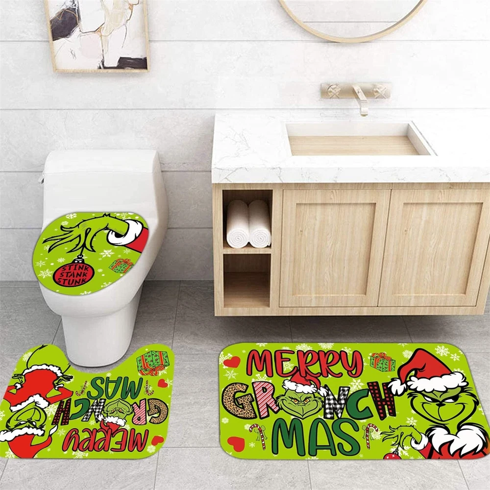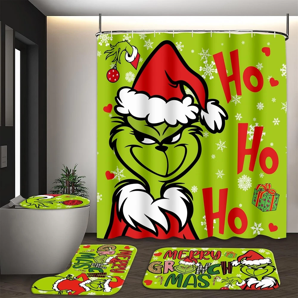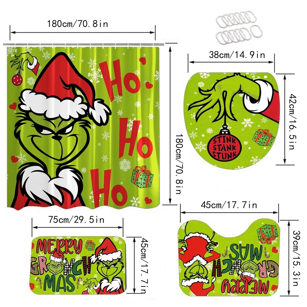 Stink Stank Stunk Grinch Merry Christmas Shower Curtain or Bathroom 4pcs/Set.