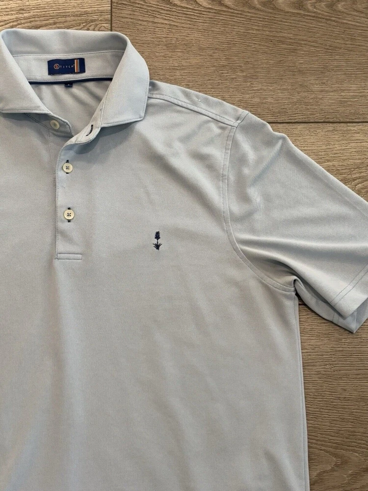 Stitch Golf Polo Shirt Mens Small Blue Performance Stretch Casual Does have logo on chest