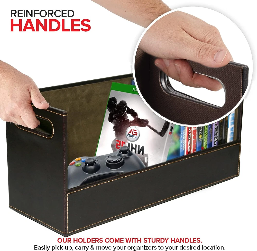 Store New Arrivals Add to Favorite View Feedback Contact Stock Your Home DVD Storage Box, Movie Shelf Organizer for Blu-Ray, Video Game Cases, Cds, VHS Tape Display Stand, Disc Holder Can Store up to 28 Dvds, Faux Leather (Espresso) Description Item model number FBA_991621072 Style Magnetic Batteries Included? No Room Type Living Room Is Customizable No Assembly Required No Product Dimensions 6.2"D x 17.75"W x 8"H Material Faux Leather Is Discontinued By Manufacturer No Manufacturer Stock Your Home Item Package Quantity 1 Batteries Required? No Item Weight 0.01 ounces Finish chocolate Number of Shelves 1 Special Features Storgare box, Holder, Compact Special Feature Storgare box, Holder, Compact Part Number FBA_991621072 Mounting Type Freestanding Color Espresso Finish Type chocolate Global Trade Identification Number 00817496020692 Recommended Uses For Product Media Brand Stock Your Home Size DVD Tray Sophisticated DVD Storage: Our shelves are a chic and stylish way to organize your DVDs. Made with a smooth, faux leather exterior, and a corrugated felt interior, our organizers compliment any home décor. Magnetic Flap: The front flap closure is secured by strong magnets. All you have to do is pull it down for easy access to all of your movie cases, blueray discs, VHS tapes, cassette tapes, and more! Interlocking Design: We've specially designed our containers to interlock with one another, allowing you to stack boxes. You can even mix and match with our CD storage trays to complete your set. Reinforced Handles: Our holders come with sturdy handles so you can easily pick-up, carry, and move your organizers to your desired location. Super Space Saver: Our DVD trays can accommodate up to 28 cases, while still being compact enough to easily fit inside of your cabinet, book-shelf, drawer, or even beside your desktop. Dimensions: 17.75” L x 6.25” W x 8.25” H. Keep all of your media neat and organized with our DVD Storage Box. With a unique interlocking design, you can stack up and build the ultimate DVD tower. The magnetic flap provides optimal visibility and easy access so you can find any album case. The sturdy handles make them easy to move to your ideal location. Our racks can also be used to store books, video games, cassettes, and more. ABOUT US We offer the best prices around on high quality products. Our E-store includes media such as books, movies, music and games while offering electronics, toys, sporting apparel, clothing, tools, general home, garden items and more. SHIPPING We are always working hard to ensure your package arrives as soon as possible. Please understand that some factors like weather, high postal traffic, and the performance of shipping companies are outside of our control. We offer free shipping to the lower 48 states and ship within 2 business days of payment, usually sooner. We do not accept P.O. Boxes. Please provide a physical address. RETURNS We offer a 30-Day Return Policy on items which you are not completely satisfied with. You have the option for a full-refund or an exchange of the item. No returns are available on items shipped outside of the USA. PAYMENT We accept PayPal. CONTACT US This page content is yet to come Please ad us to your favorite seller and visit again later Thank You CUSTOMER SATISFACTION We try our very best to make sure every customer is completely satisfied. If there's a problem, message us! We're happy to help.