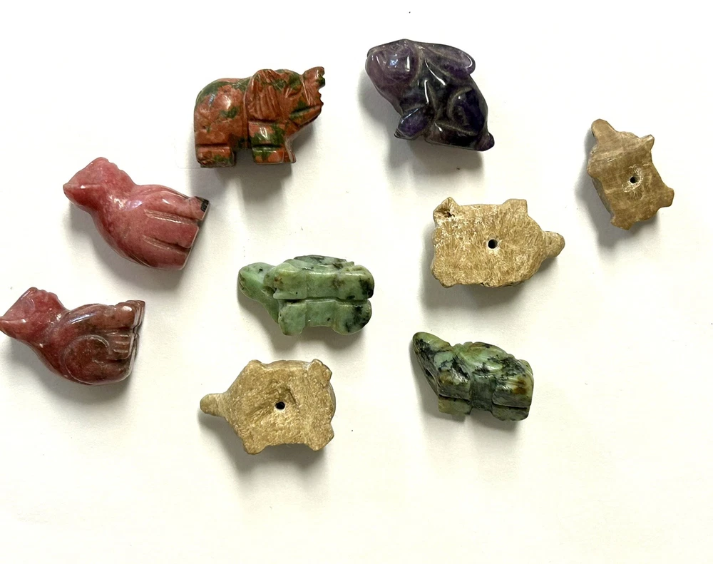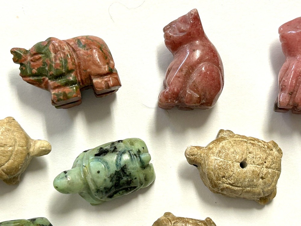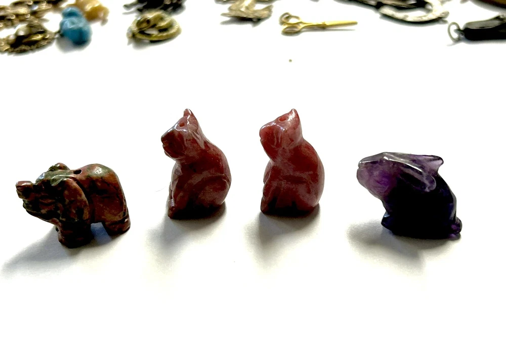 Nice little stone animal bead collection of various stones, bunny is just a bunny, not a bead. Average size is about .75"