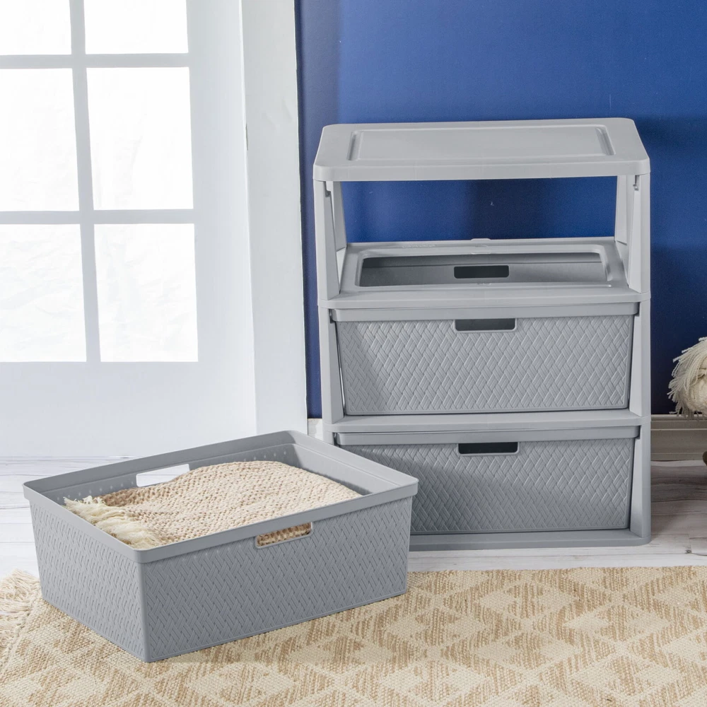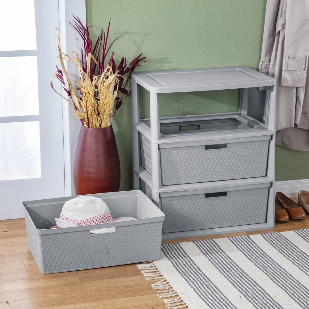 Storage organization,Sterilite Wide 3 Drawer Cross-Weave Tower Cement