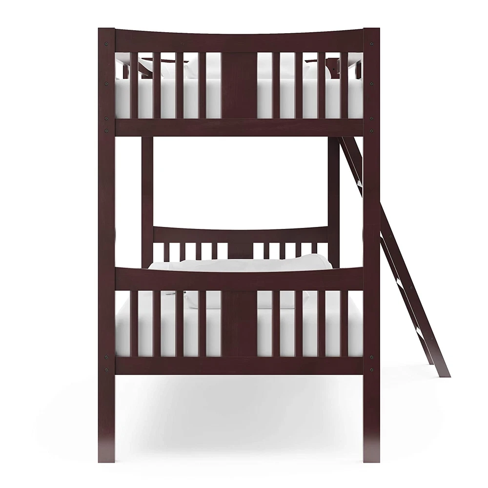 Store New Arrivals Add to Favorite View Feedback Contact Storkcraft Caribou Bunk Bed Twin over Twin Bunk Bed (Espresso) - GREENGUARD Gold Certified, Twin Bunk Beds for Kids, Converts to 2 Individual Twin Beds, Bunk Beds for Kids Description Item model number 09720-129 Country/Region of origin Malaysia Material Type Wood Compatible With Mattress Size Twin Assembly Required Yes Batteries required No Special Feature Safety Guardrails Product Dimensions 63.16"L x 79.13"W x 64.72"H Maximum Weight Recommendation 225 Pounds Item Weight 106 Pounds Material Wood Style Classic Additional product features Safety Guardrails Finish Type Painted Manufacturer Storkcraft Safety warning Top bunk not to be used by children under 6 years of age. Ladder can only be installed onto the right side of the bed. Mattress should not exceed 7 inches in thickness. Material Composition Wood Item Weight 106 pounds Target Audience children Form Factor Bunk Bed Number Of Items 1 Color Espresso Is Discontinued By Manufacturer No Furniture Finish Rubber Wood Global Trade Identification Number 00056927081462 Included Components Parts, Hardware, Assembly Instructions Floor type slatted base Brand STORKCRAFT Product Care Instructions Wipe with Damp Cloth Size Large (Pack of 1) TWIN OVER TWIN BUNK BED FOR KIDS: Twin over twin bunk bed with ladder; Convertible bunk bed can be transformed into 2 individual twin beds for maximum versatility; Designed to fit any standard twin mattress (mattresses not included); Assembly required GREENGUARD GOLD CERTIFIED, SAFETY TESTED: Screened for more than 10,000 chemicals and VOCs known to pollute indoor air; Tested at third-party, accredited laboratories to meet or exceed applicable CPSIA & ASTM International category safety standards QUALITY CRAFTMANSHIP: Crafted of rubberwood solids, engineered wood, and wood composites; Includes fixed 5-step ladder and full-length safety guardrails for top bunk; Top bunk not to be used by children under 6 years of age AWARD-WINNING BRAND: Storkcraft is the proud recipient of the Parent Tested Parent Approved (PTPA) Seal of Approval for nursery and children’s furniture, and the 2018-2023 Women’s Choice Award for 9 out of 10 Recommended Baby & Kids Furniture BUNK BED DIMENSIONS (ASSEMBLED): Depth (41.97 inches) x Length (79.13 inches) x Height (64.72 inches) x Weight (142.80 pounds); Mattress must not exceed 7 inches (17.78 cm) in thickness Ships in two boxes; may ship separately The Storkcraft Caribou Solid Hardwood Twin Bunk Bed is an award-winning, iconic family-favourite. Its strong & sturdy construction, full-length safety guardrails, durable 5-step ladder, and unique fastening systems make the Storkcraft Caribou the perfect addition to any kids room. For added versatility, the Caribou can be configured into 2 separate twin-size beds. The Caribou is GREENGUARD Gold Certified — Certified products are screened for more than 10,000 chemicals and VOCs known to pollute indoor air. Storkcraft is the proud recipient of the Parent Tested Parent Approved (PTPA) Seal of Approval for nursery and children’s bedroom furniture, and the 2018-2023 Women's Choice Award for 9 out of 10 Recommended Baby & Kids Furniture. Backed by a 1-year limited manufacturer’s warranty. Assembly required. Mattress sold separately. Maximum weight of top bunk: 225 pounds. Warning: Bunk bed mattress should not exceed 7 inches in thickness. ABOUT US We offer the best prices around on high quality products. Our E-store includes media such as books, movies, music and games while offering electronics, toys, sporting apparel, clothing, tools, general home, garden items and more. SHIPPING We are always working hard to ensure your package arrives as soon as possible. Please understand that some factors like weather, high postal traffic, and the performance of shipping companies are outside of our control. We offer free shipping to the lower 48 states and ship within 2 business days of payment, usually sooner. We do not accept P.O. Boxes. Please provide a physical address. RETURNS We offer a 30-Day Return Policy on items which you are not completely satisfied with. You have the option for a full-refund or an exchange of the item. No returns are available on items shipped outside of the USA. PAYMENT We accept PayPal. CONTACT US This page content is yet to come Please ad us to your favorite seller and visit again later Thank You CUSTOMER SATISFACTION We try our very best to make sure every customer is completely satisfied. If there's a problem, message us! We're happy to help.