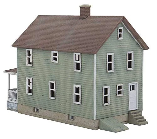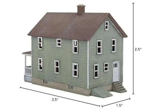 The N Scale -Story Frame House is typical of homes constructed by the thousands between the 1870s and 1910s and still in use today. Designed to make it easy to add several non-identical homes to your neighborhood, this easily customizable kit includes different styles of front walls and porches. The -Story Frame House will look great in any steam or diesel-era rural or town scene Classic North American house design for middle-class neighborhoods Includes parts for different front walls and porches Separate doors, windows and details N Scale Model