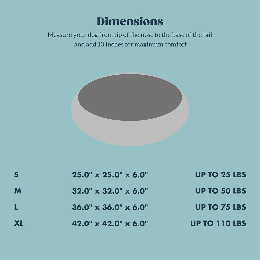 Stoutwool Indestructible Dog Bed - Round Chew Proof Dog Bed - Fluffy Pillow Bed for Aggressive Chewers - Durable - Washable - Ideal for Small Dog Breeds - 25", Charcoal (Y#0717) About this item Soft Armored Beds for Persistent Chewers - The chew proof dog bed is crafted from extra durable densely-woven fabric with reinforced stitching, YKK zippers, virtually withstand scratching, digging, and chewing from aggressive dogs Alternative to Common Chew Proof Bed - The Stoutwool fabric is super soft and warm, offering breathable comfort and long-lasting support, generously filled with premium fiber filling for your pet to relax and rejuvenate. Dual-Use Non-chewable Dog Bed – Features Pelzin's innovative Cybarmour tech fabric on the bottom, also withstands punctures and tears from digging and scratching. delivering waterproof protection and a cooling touch. No Corners to Gnaw - With its corner-free design, this bed offers minimal chewing opportunities for determined pups | 25 inch puppy bed for small dog breeds weighing under 25 pounds | If you're unsure about size, choose one size up for extra comfort. Easy Clean - The chew resistant dog bed is removable, machine washable and dryer friendly, with a quick-dry feature for easy maintenance and convenience, the filling are protected by a waterproof liner for easy cleanup.