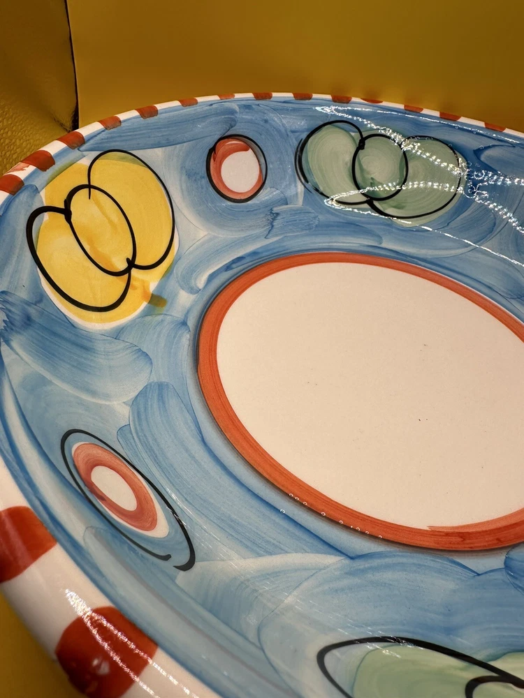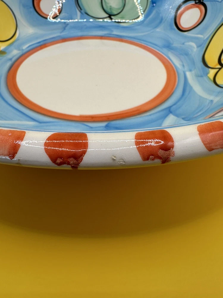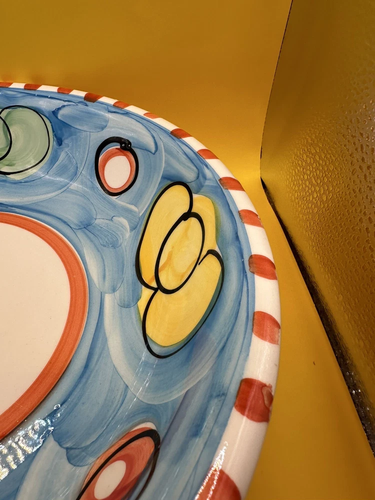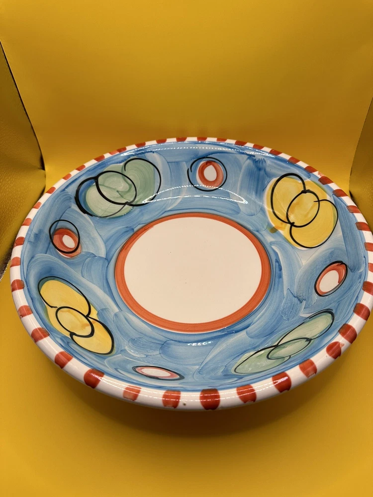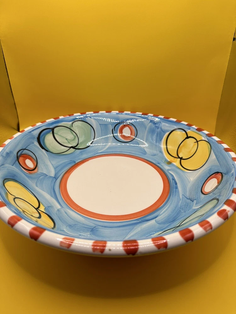 Hand Painted, Glossy and Beautiful! Serving, Fruit, Pasta Bowl - Made in Italy. Stoviglieria Pottery, Colorful 12" Bowl. Excellent Condition, does have a few rough glaze around edges from the factory. One teeny tiny flea bite on edge.