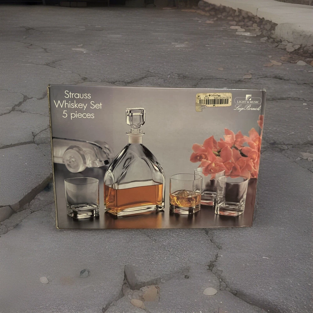 Occasion: All Occasions Color: Clear Number of Items in Set: 5 Type: Decanter Brand: Strauss Material: Crystal, Glass Set Includes: Decanter, Glasses