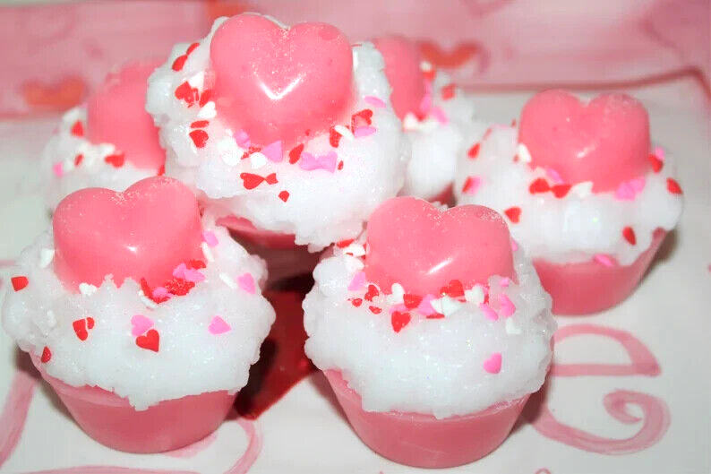 **** SHIPPING IS OFTEN CALCULATED HIGH WHEN PURCHASING MORE THAN 1 ITEM SO FEEL FREE TO MESSAGE ME FOR A SHIPPING QUOTE **** When combining purchases please click on "request total from seller" at checkout and wait for me to send you a invoice with combined shipping. If you are using your phone this option may not be available and if so just message me and I can make you a listing with everything combined and the correct amount on shipping. Thank You ;) These are my handmade highly scented tarts or melts that are made with a special blend of paraffin wax that allows me to add up to 10% more fragrance than most waxes. These cute as can be cupcakes are scented to the max with STRAWBERRY MARSHMALLOW CREAM. Sweet, creamy and completely intoxicating. Fresh picked strawberries, red and ripe, paired with more creamy sweet, dreamy goodness. It's a total flavor smash up. A burst of joy and a blast of juicy that hits your sweet spot every time. Completely wonderful! They are 1 3/4" tall x 2" wide approx. and you will receive 6 of them. I put puffy hearts on top of a creamy frosting dusted with glitter and sprinkled heart confetti around them. These make great bowl fillers or tiered tray decor till you are ready to melt them and they smell wonderful just sitting out for display without melting them. They also make great gifts so please be sure to check my other listings for terrific smelling candles and tarts to go with your order. International Buyers : Please contact me for shipping quote. Shipping I strive to ship within 48 hours of payment received not including weekends and holidays. I ship USPS Priority or Parcel Post and for the heavier orders I can ship Fed-Ex. I do offer USPS Flat Rate shipping as well. Insurance is the buyers responsibility. I am always happy to combine auctions to save you money on shipping fees and I only change actual shipping costs. Please email with any shipping questions or quotes if needed. I am always happy to combine auctions to save you money on shipping fees too! Thanks for stopping by! Please do come back again soon~ *** Please note I do not accept returns for used merchandise. Must be returned in same condition as received. *** RETURNS ARE ONLY ACCEPTED IF ITEM HAS BEEN MISREPRESENTED