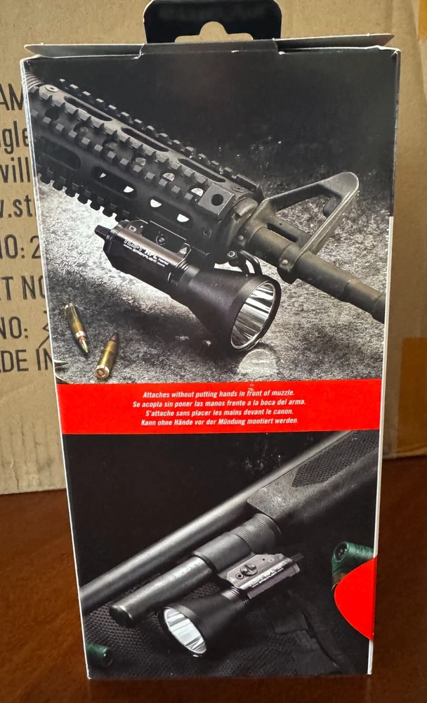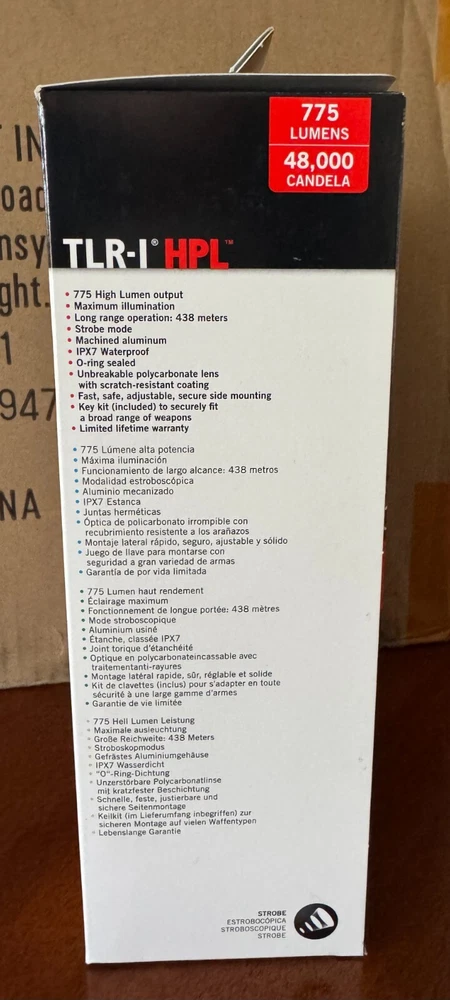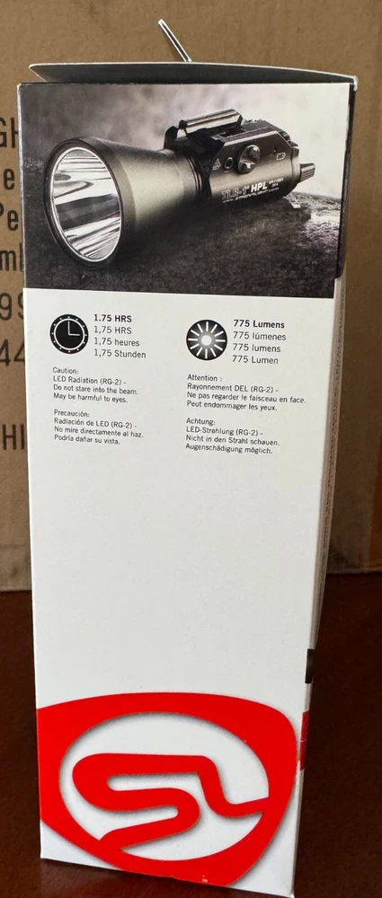 Authentic Streamlight 69215 TLR-1 HPL with white LED, attaches without putting hands in front of muzzle, 775 high lumen output with maximum illumination, strobe mode, IXP7 waterproof, O-ring sealed, unbreakable polycarbonate lens with scratch-resistant coating, secure side mounting, key kit (included) to securely fit a broad range of weapons and it has a limited lifetime warranty.