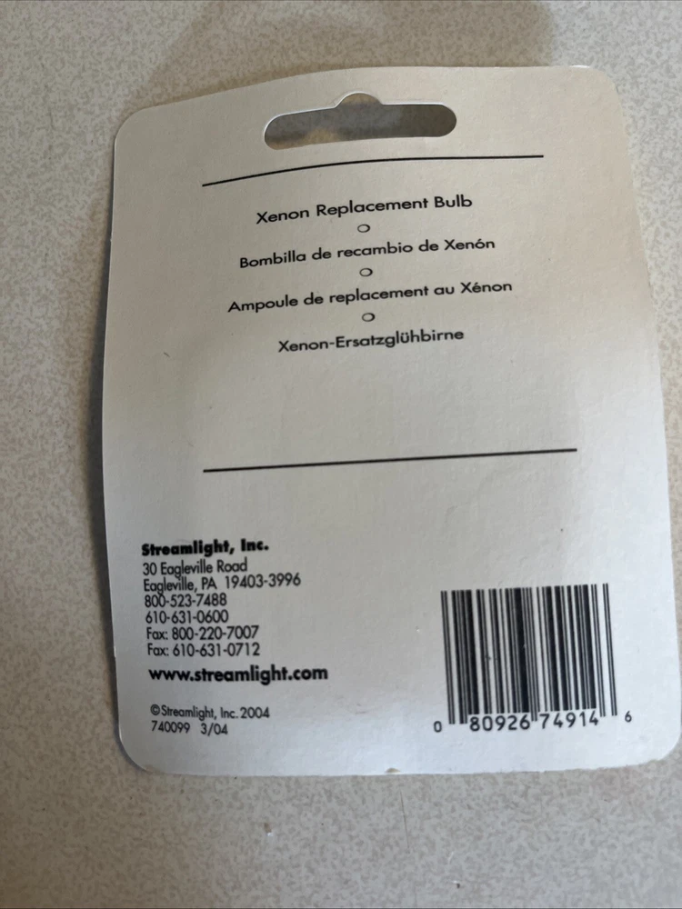 This is a Streamlight 740099 Strion Replacement Xenon Bulb. This bulb is compatible with Streamlight flashlights and is a perfect replacement for your old one. It is a high-quality bulb that will surely provide you with the best lighting experience. The bulb is easy to install and is designed to last longer than usual. It is a lightweight accessory that weighs only 0.02 pounds and has a length of 4.50 inches, a width of 3.50 inches, and a depth of 3.50 inches. This bulb is a must-have for anyone who wants to replace their old flashlight bulb.