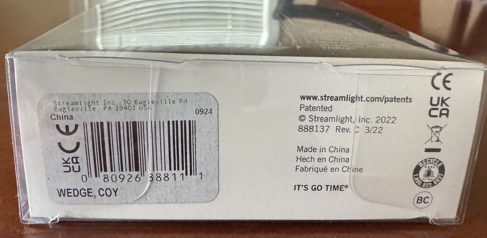 Authentic Streamlight 88811 Wedge, rechargeable everyday carry light, 1,000 Lumens, color: coyote, limited lifetime warranty, intuitive rotating thumb switch, reversible deep pocket carry clip, IPX7 waterproof and includes USB-C cord and lanyard. Brand new.