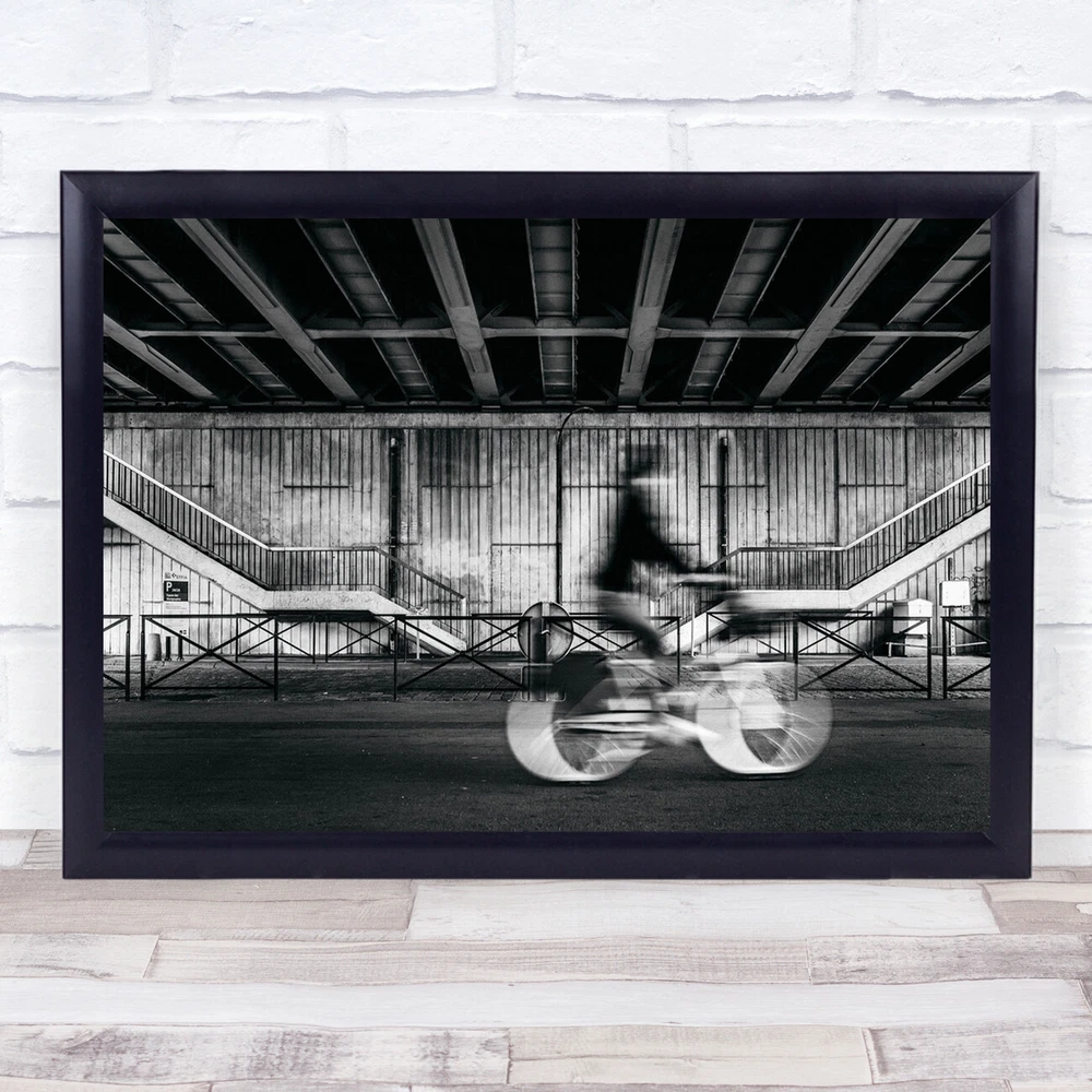 Street Bike Bicycle Black & White Woman Stairs Staircase Road Wall Art Print