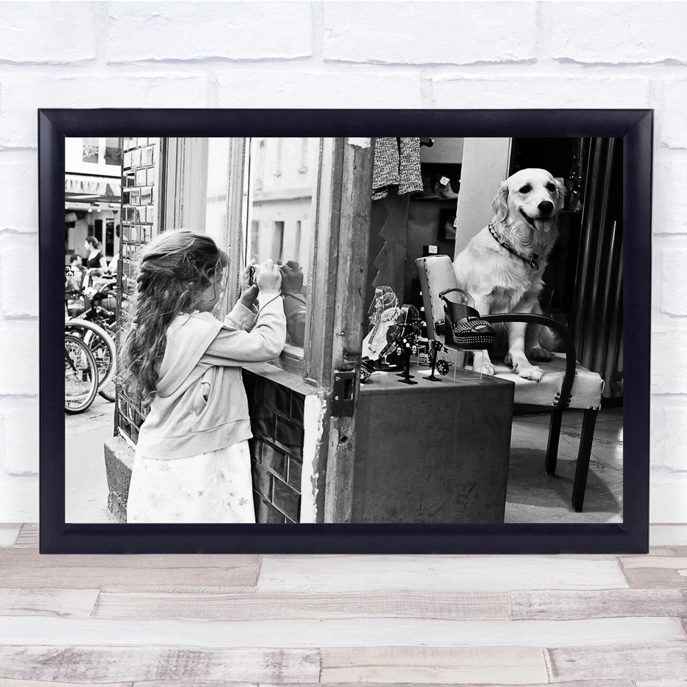 Street Black & White Black White Captive Animal Dog Girl Chair Sitting Print