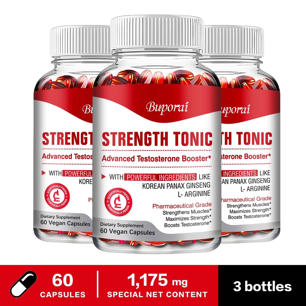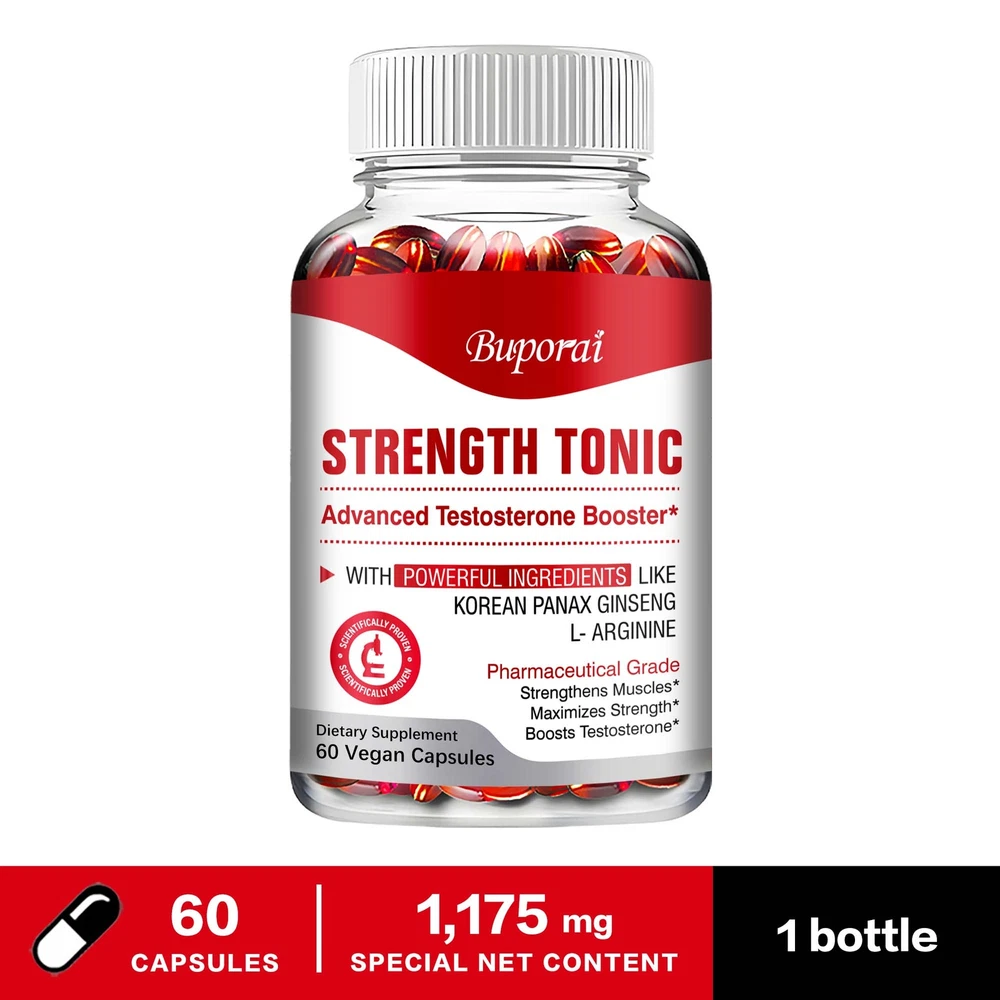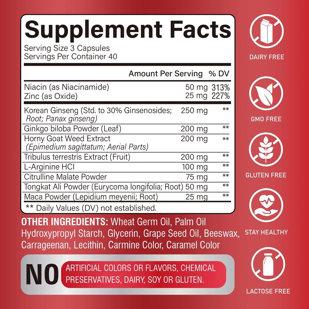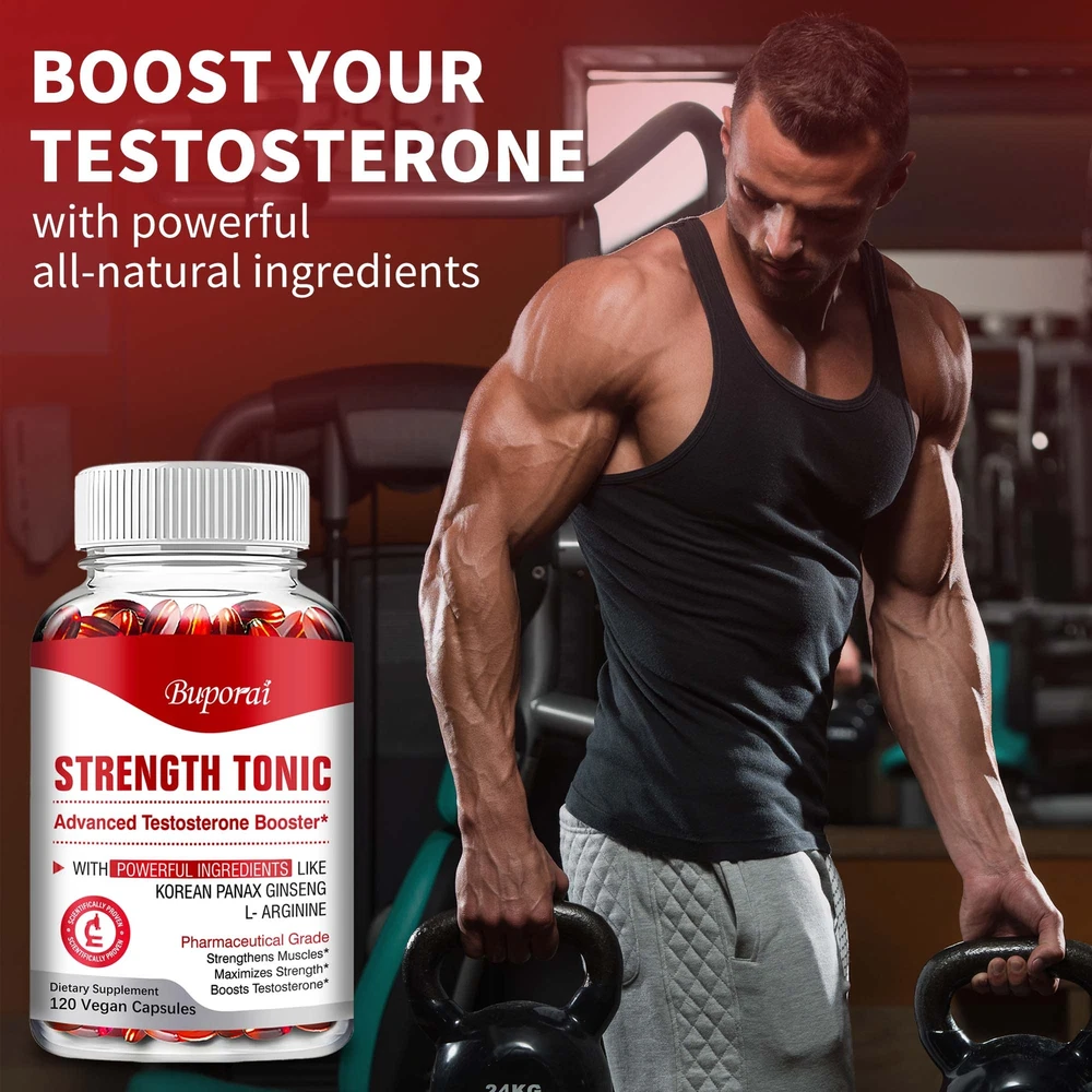 Effects: Energy & Endurance, Men's Health, Testosterone Booster Ingredients: Korean Ginseng,Ginkgo biloba Powder,Horny Goat Weed,Tribulus terrestris Directions: Take 2 capsules once daily after a meal. Shipping: Ships within 48 hours on working days. Shelf life: 2 years Description: MAXIMIZE PERFORMANCE: Our testosterone supplement for men is designed to give you an unparalleled performance boost, helping to elevate your game in and out of the gym. NATURAL HORMONE BOOSTER: Our testosterone booster supplement works with your body to boost testosterone and growth hormone levels while blocking estrogen, increasing muscle mass, energy, strength, and vitality. Document