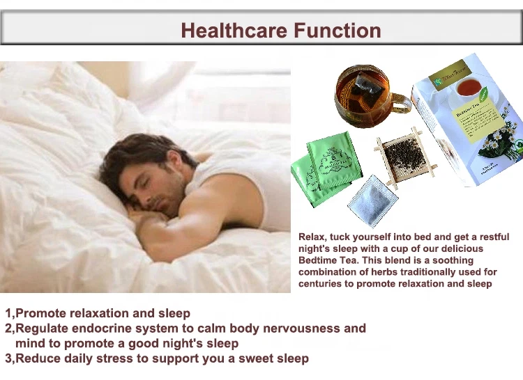 Name Bedtime tea Ingredients Chamomile,Passionflower, Licorice, Lavender Specification 2.5g/teabag,20 teabags/box