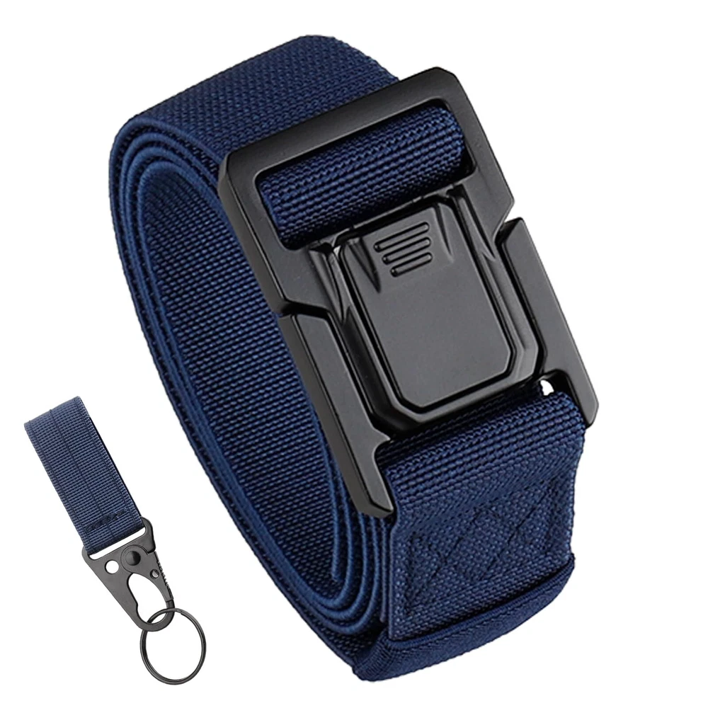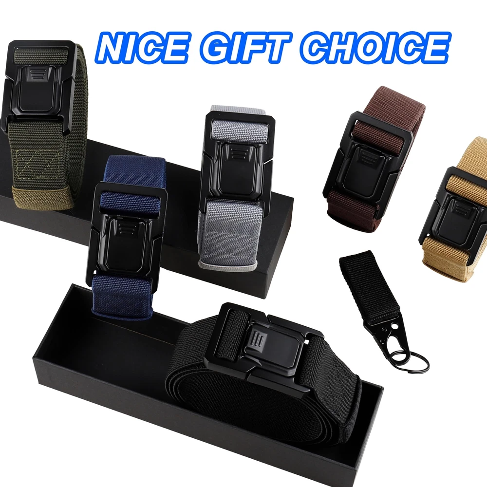 ⭐️[ Heavy Duty Upgrade Buckle ]: The tactical belt buckle is made from premium quality aluminium alloy, whose merits are lightweight, anti-corrosion and weatherability. And the buckle features heavy-duty, quick release and easy to use. ⭐️[ Comfortable Elastic Strap ] : Our stretch tactical belt is designed with no holes for a perfect fit that guarantees maximum comfort and convenience adjustability for all men, making it perfect for daily, work, outdoor activities such as hiking, fishing and mountain climbing. ⭐️[ A Great Combination ] : Combine the sturdy alloy buckle with the wrinkle-free strap is for durable and stretchy to withstand wear and tear from rugged outdoor adventures or everyday use. Making it ideal for men in the military, SWAT, rigger, security staff and other outdoor enthusiasts. ⭐️[ Packed in Gift Box ]: Our elastic tactical belt comes in a gift box with three sizes to choose from, making it the perfect gift idea for that special man in your life who loves outdoor activities or simply needs a strong, durable work belt that won't let them down. ⭐️[ Satisfying Service ] : 30-Day Money-Back Guarantee. All tactical belts will be reviewed carefully before delivery to hope you will enjoy the shopping. Please kindly contact us if you get any question about the belt and we will reply within 24 hours.