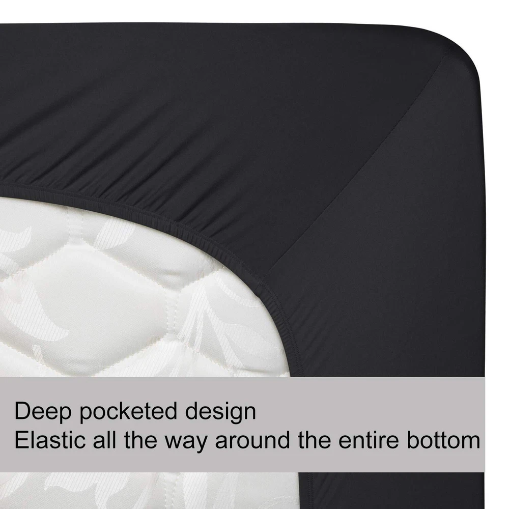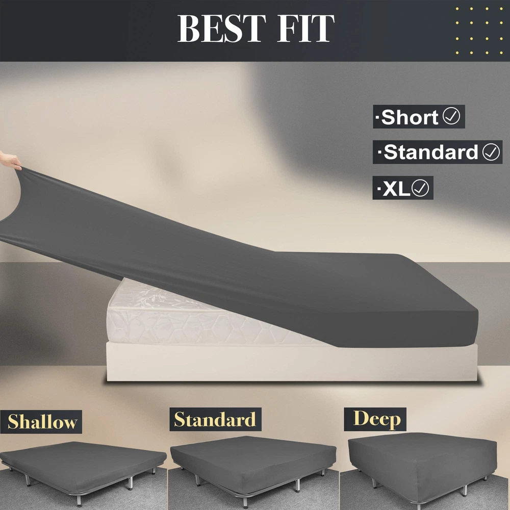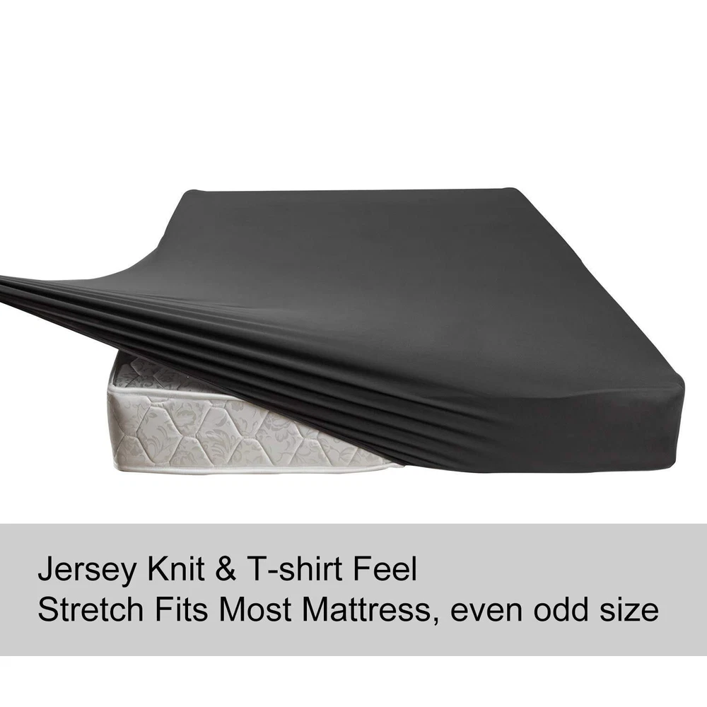 Stay Put All Night: The fabric with 4-way flexibility tech stretches over the mattress and stays in place securely all night, no more slipping off, moving or wrinkling, fits tightly and prevent scratching from your pets like dog or cat, also kids friendly No More Coming Off: Deep pocketed design and the elastic all the way around the entire bottom & staying underneath, which keeps corners from popping up even if you toss and turn. The fitted sheet keeps its shape, NO MORE tucking the sheet everyday or buying straps or clips Tailored Sheet for Mattress/Box Spring: This stretchy fitted sheet fits for any mattress/boxspring up to 13" depth. Great for memory foam-type mattress, adjustable bed, and even odd sized mattresses. Other Uses: Using the stretch fitted sheet as sofa cover, couch cover or others if the size meets Ultimate Sleep Support: The bottom Jersey sheet is super soft and comfortable, like T-shirt feeling and stays smooth & cool, let you enjoy a great sleeping experience Included 1 Fitted Sheet Only in package