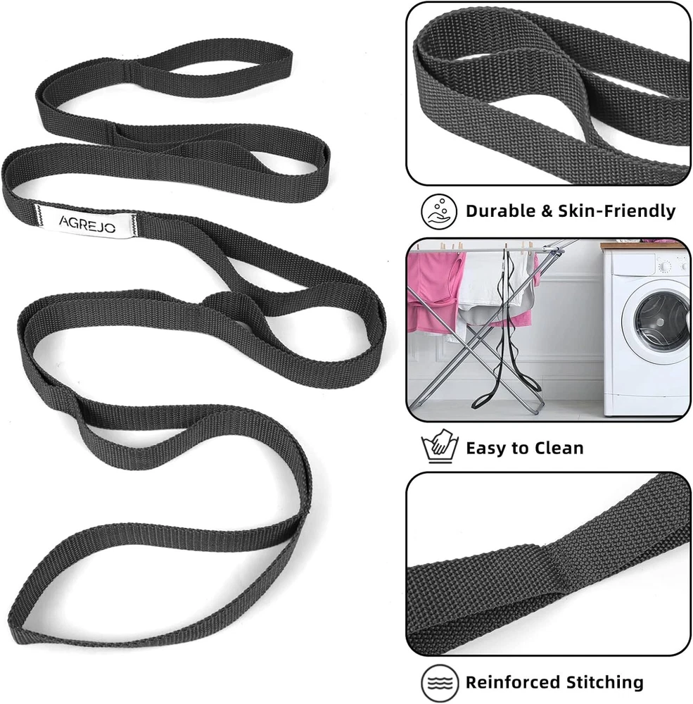 Stretching Strap Yoga Physical Therapy for Home Workout, 1-Pack Black Product Details Brand: AGREJO Material: Polypropylene Color: 1-Pack Black Item Weight: 0.1 Kilograms Style: Modern Product Dimensions: 75"L x 1"W Manufacturer: AGREJO Item Package Dimensions L x W x H: 12.99 x 4.13 x 0.59 inches Package Weight: 0.1 Kilograms Item Dimensions LxWxH: 75 x 1 x 0.04 inches Brand Name: AGREJO Part Number: THD-YOGASTRAP-001 Brand: AGREJO Material: Polypropylene Color: 1-Pack Black Item Weight: 0.1 Kilograms Style: Modern Multi-Function:Simple yet practical, designed for multiple purposes, including physical therapy, yoga, fitness, pilates, dance, ballet, daily stretching, and more Long Lasting Premium Quality: Made of sturdy polypropylene, this tough yoga strap stands out in a crowd by providing amazing stability for your safe practice; and the reinforced stitching makes it last for years to come Perfect Size: Strong and sturdy stretch strap with 10 individual loops. Each loop measures longer than the standard multi-loop strap (75 inches long & 1 inch wide), giving you more room to stretch out Boosts Overall Health & Well-Being: Greater Flexibility & Greater Range of Motion & Enhanced Muscle Recovery & Reduced Risk of Injury. Many sports trainers suggest using these stretching strap for muscle contraction, relaxation, and deep stretching Unmatched Customer Service:AGREJO are willing to provide you a safe and high quality yoga stretching strap, and friendly customer service stretching straps yoga strap