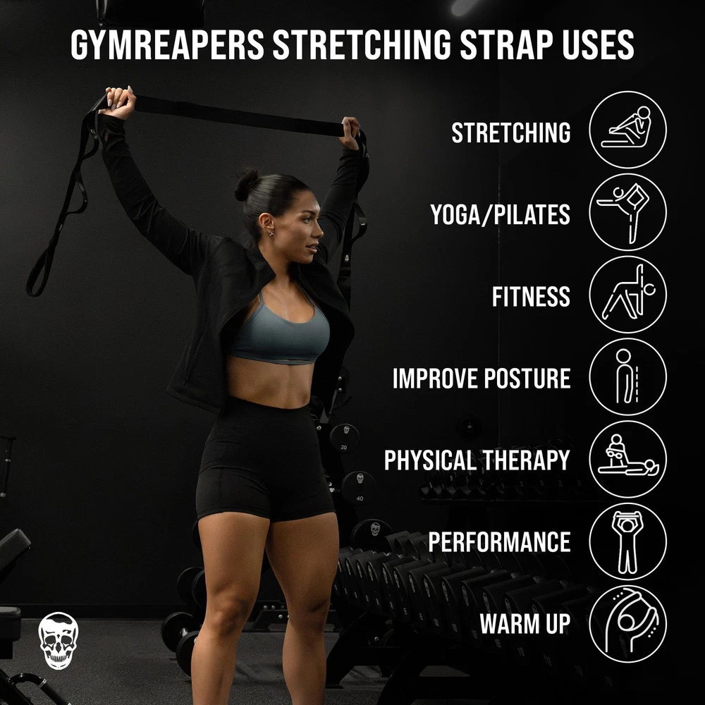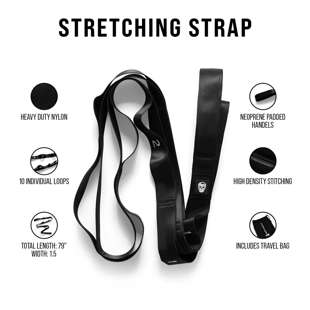 Stretch Band Improves Mobility and Reduces Risk of Injury. Provides Premium Quality Stretching Straps & Other Weightlifting Equipment and Accessories. Created by athletes for athletes. We've sought out the toughest and most durable materials to form our stretch band The premium neoprene material along with a hand straps on each side allows you to stretch deep with confidence and comfort Versatile stretch band with secured handle straps Perfect for all forms of stretching: Hamstring, Fascia, Shoulder, Legs, Hips Why our stretch strap is a must have for any beginner, intermediate, or advanced fitness addict to have in their gym bag? One size fits all with 10 loops allows anyone to be able to use the Stretch Strap High quality neoprene, reinforced stitching, allows for ultimate comfort & durability Enables deep and safe stretches to be added to your body's natural range of motion, improving overall strength and performance What is included with your purchase? 1 Stretch Strap 1 Strap Carry Bag Order in confidence, your order comes with a LIFETIME WARRANTY and handles returns with no hassles 100% guaranteed. Don't hesitate, join the movement and add our Stretch Strap to your cart to instantly increase flexibility, performance, and stability. MAXIMUM RANGE OF MOTION - Stretching is essential to take your training to the next level. Use Stretching Strap before or after your workout to improve flexibility, blood flow, and daily performance. Boost stability and overall health with this must have accessory. ENHANCED PERFORMANCE - 10 different loop options along with hand straps on each side to get a deeper stretch and improve overall health. The perfect size to coincide with all of your fitness needs. Our Stretch Strap is great for safe at home use & includes a compact carrying bag to bring with you on the go. REDUCE RISK OF INJURY - Improve stability, reduce soreness, and promote blood circulation with our Stretching Strap. Warming up the muscles gradually with our non elastic nylon stretching strap can prepare your body for more intense activities, decreasing the risk of sudden muscle injuries. BUILT FOR DURABILITY- High density stitching and quality neoprene is going to ensure that your stretch strap is made to last. Non-Elastic Stretching Strap is easy to use and perfect for pilates, stretching, physical therapy, and yoga. TRAINING GEAR - designs and manufacturers high quality fitness equipment and apparel that merges durable products, aesthetic design, and high quality materials. We’ve developed a full line of training tools to assist you in pursuing and achieving all of your fitness goals.