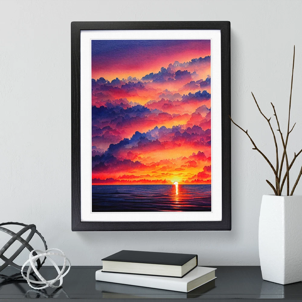 Transform your living space with our captivating framed wall art prints. Crafted in the UK, the stunning Striking Ocean Sunset No.5 framed print is designed to elevate your home decor. We utilise high-quality inks to ensure the colours of the artwork are rich, vibrant, and true to life. The print seamlessly fits within a contemporary frame, creating a stylish wall art picture that is ready to hang in your living room, lounge, bedroom, dining room and home office. Visit Our Shop eBay Message Framed Art Print Enhance your living space and showcase your individual style with our framed prints. Each design is printed upon premium art paper with fade-resistant inks, ensuring the colours remain rich and vibrant for years to come. The print is encased in a ready-to-hang frame, offered in black, oak, or walnut, and safeguarded by shatter-resistant Perspex. An ideal addition to your home, and the perfect gift choice. Like what you see? Visit our eBay store to see more. Premium Quality : The design is printed on quality art paper, enhanced with fade-resistant colours. Ready to Hang : The frame is pre-fitted with hanging hardware, making wall mounting simple, safe and secure. Frame Dimensions : A4 - 25 x 34 cm / A3 - 34 x 46 cm / A2 - 46 x 64 cm. Fast Shipping : Prompt, reliable UK-based dispatch. Customer Satisfaction : Our priority is your satisfaction which is why we offer a hassle-free return policy. Payment You can pay for your order safely and securely via credit or debit card, Apple Pay, Google Pay, and PayPal. Shipping Production times are 1 to 2 working days. Orders are sent via Royal Mail or Evri (depending on size). Returns For your peace of mind, we have a 30-day returns policy in place. Please, contact us for more details. At Big Box Art, we are dedicated to providing high-quality wall art and decorative homeware items. From the outset, we've focused on excellence in our products, service, and reputation, continually enhancing our standards. With an extensive selection of designs, you're certain to discover the perfect piece to suit your taste. ? Copyright 2021, Big Box Art. All rights reserved. Made with by eBayshopdesign.org