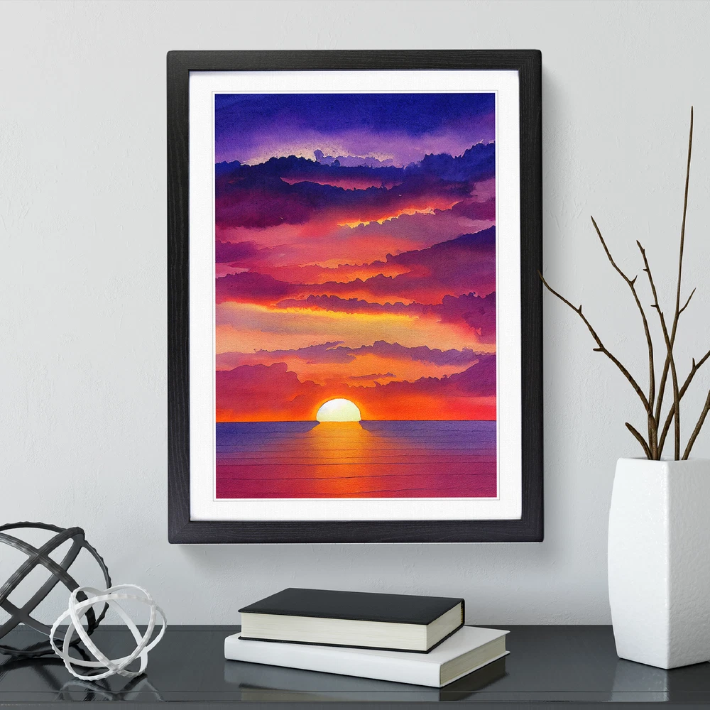 Transform your living space with our captivating framed wall art prints. Crafted in the UK, the stunning Striking Ocean Sunset No.6 framed print is designed to elevate your home decor. We utilise high-quality inks to ensure the colours of the artwork are rich, vibrant, and true to life. The print seamlessly fits within a contemporary frame, creating a stylish wall art picture that is ready to hang in your living room, lounge, bedroom, dining room and home office. Visit Our Shop eBay Message Framed Art Print Enhance your living space and showcase your individual style with our framed prints. Each design is printed upon premium art paper with fade-resistant inks, ensuring the colours remain rich and vibrant for years to come. The print is encased in a ready-to-hang frame, offered in black, oak, or walnut, and safeguarded by shatter-resistant Perspex. An ideal addition to your home, and the perfect gift choice. Like what you see? Visit our eBay store to see more. Premium Quality : The design is printed on quality art paper, enhanced with fade-resistant colours. Ready to Hang : The frame is pre-fitted with hanging hardware, making wall mounting simple, safe and secure. Frame Dimensions : A4 - 25 x 34 cm / A3 - 34 x 46 cm / A2 - 46 x 64 cm. Fast Shipping : Prompt, reliable UK-based dispatch. Customer Satisfaction : Our priority is your satisfaction which is why we offer a hassle-free return policy. Payment You can pay for your order safely and securely via credit or debit card, Apple Pay, Google Pay, and PayPal. Shipping Production times are 1 to 2 working days. Orders are sent via Royal Mail or Evri (depending on size). Returns For your peace of mind, we have a 30-day returns policy in place. Please, contact us for more details. At Big Box Art, we are dedicated to providing high-quality wall art and decorative homeware items. From the outset, we've focused on excellence in our products, service, and reputation, continually enhancing our standards. With an extensive selection of designs, you're certain to discover the perfect piece to suit your taste. ? Copyright 2021, Big Box Art. All rights reserved. Made with by eBayshopdesign.org