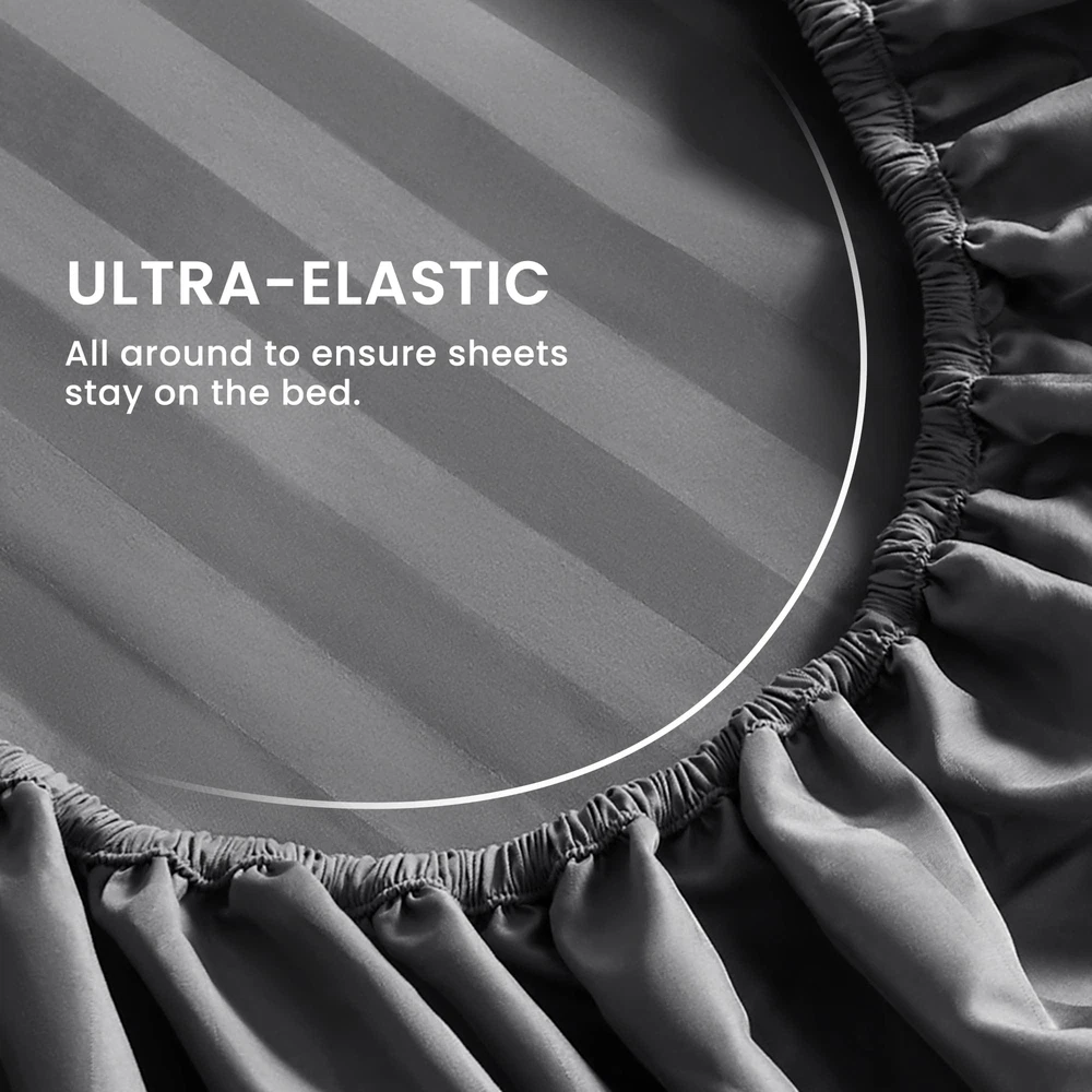 120g Damask Stripe Bed Sheet Sets Soft Wrinkle Free Fade Resistant easy LUXURY - We use yarns with advanced satin weaving craftsmanship, washing process to create this bed sheets. The satin width is more than 1 inch, presents different matte finish and lustrous colors under the light, adding extra elegance and luxury to your bedroom. Classic colors in White, Navy Blue, Grey and Stone Blue offer you timeless elegant looks and easy to match with your traditional and contemporary home decor TEMPERATUE REGULATION - Fabric treated with NANOTEX Coolest Comfort Technology. The advanced moisture-wicking fabric dries 100% faster than cotton, actually balances your body temperature, pulling moisture away from your skin out to the fabric's surface, moisture can more easily evaporate and gives superior comfort against your skin without extra heat and sweat. Leave you feeling refreshed and rejuvenated. It will keep you cool in the summer and warm in the winter ULTRA SOFT & COZY - The 120gsm over-thick, and ultra-soft double brushed microfiber fabric is thicker, softer and more durable than most market's 90gsm and 110gsm products. The excellent softness makes it very comfortable. Quality craftmanship keeps it more stable and durable. The sheets will provide you with the utmost soft and cozy sleeping experience DEEP POCKET & PRECISION FIT - Deep pocket fits mattresses up to 16 inches deep, perfect for oversized mattresses. All around covered by elastic to ensure the sheets stay on bed and not slip off or move around. Shrink and wrinkle resistant. Machine wash cold, do not use bleach, tumble dry low SIZE INCLUDE - Twin size includes 3 pieces - 1 Flat Sheet 66x 96 inch, 1 Fitted Sheet 39x75 inch, 1 Pillow Case 20x30 inch. Full size includes 4 pieces - 1 Flat Sheet 81x 96 inch, 1 Fitted Sheet 54x75 inch, 2 Pillow Case 20x30 inch. Queen size includes 4 pieces - 1 Flat Sheet 102x 90 inch, 1 Fitted Sheet 80x60 inch, 2 Pillow Case 20x30 inch. King size includes 4 pieces - 1 Flat Sheet 102x 105 inch, 1 Fitted Sheet 80x78 inch, 2 Pillow Case 20x40 inch