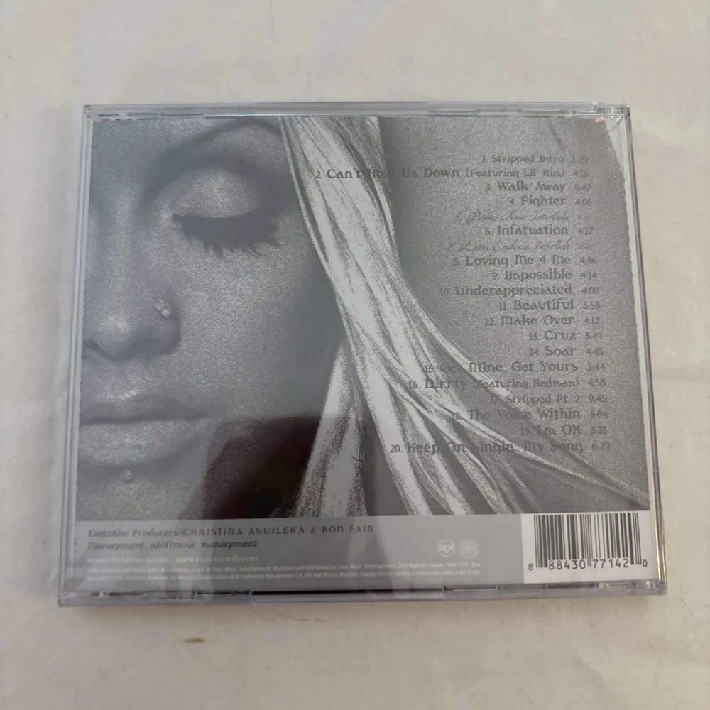 Format:CDRelease Title:StrippedProducer:Rockwilder, Rob Hoffman, Jasper Cameron, Linda Perry, Christina Aguilera, Scott Storch, Heather Holley, E. Dawk, Balewa Muhammad, Steve Morales, Glen BallardRecord Label:BMG (Distributor)UPC:0078636803722gtin13:0078636803722Genre:Rock, Rock & PopRun Time:78 min.Artist:Christina Aguilera, Redman, Dave Navarro, Linda Perry, Eve, Alicia Keys, Glen Ballard, Lil' KimRelease Year:2002