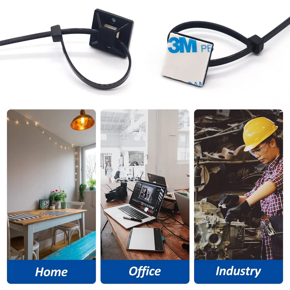 Strong Back-Glue Self Adhesive Cable Zip Tie Mounts Kit - 100 Set Cable Management Clips with 6" Zip Ties, Wire Holders - Outdoor Sticky Wire Organizer Clips-Black 100 Set Adhesive Cable Zip Tie Mounts: 100 pcs 3/4" x 3/4“ black adhesive mounts and 100 pcs 6 inch x0.14 inch black nylon zip ties Strong and Sturdy: Adhesive Zip Tie Mounts are manufactured from 3M Strong Adhesive and PA66 nylon with excellent viscosity and durability. Easy to Install: Mounts without tools, just peel the protective layer off the adhesive back and place it on a clean, flat and dry surface, press for about 10 seconds or so to maximize the adhesiveness of the tape. then pass the cable tie through the hole, locking teeth in the cable tie head. You also can use the built-in screw hole for added strength. Widely Used: This zip tie mount base can be used indoors or outdoors. Such as, indoors, our Wire Tie Holder works really well for guiding cords along the undersides of desks and tables, and can also be used along walls or other flat Surface .you can use it to hide cables and power cables to make your desktops tidy. Outdoors, you can use these Cable Tie mounts to secure the LED strips and some messy wiring. Quality Commitment: If you are not satisfied with your purchase, please get in touch with us, we provide 90-day money back.100% Satisfaction Guarantee for risk-free shopping! 3/4" 3M Back-Glue Self Adhesive White Strong Cable Zip Tie Mounts 100pcs with 6" Ties, Screws, Outdoor Sticky Wire Fasteners Cable Clips Management Anchors Organizer Holders Squares Shipping We offer FREE shipping on all orders! We ship within Three business days of payment, usually sooner. We use a selection of shipping services such as UPS, FedEx, USPS etc. We only ship to the lower 48 states, no APO/FPO addresses or PO Boxes allowed. Local pickups and combined shipping options are not provided at this time. Return You can return a product for up to 30 days from the date you purchased it. Any product you return must be in the same condition you received it and in the original packaging. Please keep the receipt. Payment We accept payment by any of the following methods: PayPal Please pay as soon as possible after winning an auction, as that will allow us to post your item to you sooner! Feedback Customer satisfaction is very important to us. If you have any problem with your order, please contact us and we will do our best to make you satisfied. Contact Us If you have any queries, please contact us via ebay. We usually respond within 24 hours on weekdays. Please visit our eBay store to check out other items for sale! Thank you for shopping at our store.