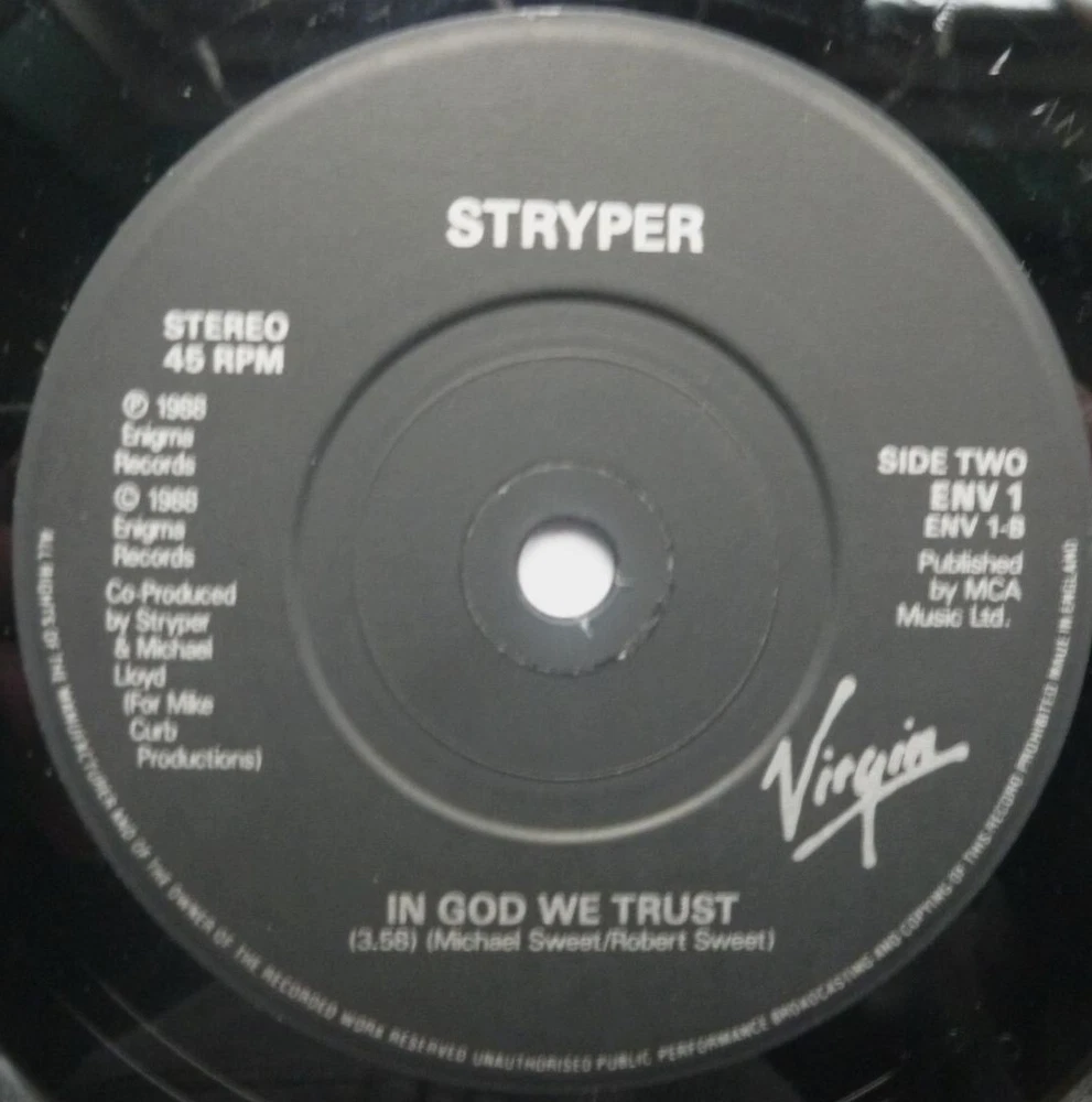 Artist: Stryper Title: Always There For You Format: 7" Label & Cat No: Enigma ENV1 Grading: EX/EX Year: 1988 Additional info: picture sleeve, Always There For You/In God We Trust *********************************************************************************** • thespacebar.records have been selling vinyl online for over 20 years. • We don't use stock photos. What you see is what you get. If we have multiple copies we'll send the best one. • If there are any issues when we come to pack up your record we will message to let you know and wait for you to confirm or cancel prior to shipping. • Much of our stock is in near-perfect condition. • Many items are unplayed but are graded conservatively as EX. • We're in the process of adding more photos to our listings. It's a big job. In the meantime if you'd like to see more images of any item, please send a message and we'll fast-track it. • We grade the vinyl 1st and the sleeve (if applicable) 2nd. • If there is only one grading and it seems very cheap, please check the item description carefully as we sell some records without sleeves and some sleeves without records. We always check with buyers before posting these items. • Singles that don't have a picture sleeve are supplied in an original company sleeve where possible. Otherwise they are sent in a plain white sleeve. • Records are supplied with a 400g polythene sleeve for protection. • To prevent seam splits, records are removed from their original sleeves for posting. • Everything is pressed in the UK unless otherwise stated in the item description. • More information/track listings/photographs available on request. Enjoy browsing our shop - Jeff & Catherine
