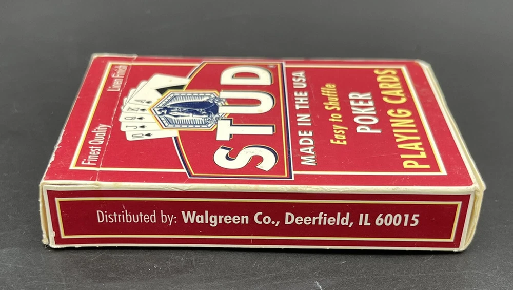 Stud Poker Playing Cards Linen Finish Made In The USA Red Pre-Owned Pre-owned in overall good condition. Actual item shown in the photos. Ships within 1 business day of payment being received We ship with care! Checkout my other items for sale for other playing cards, sports cards, comics, video games, and much much more! Please feel free to ask any questions!