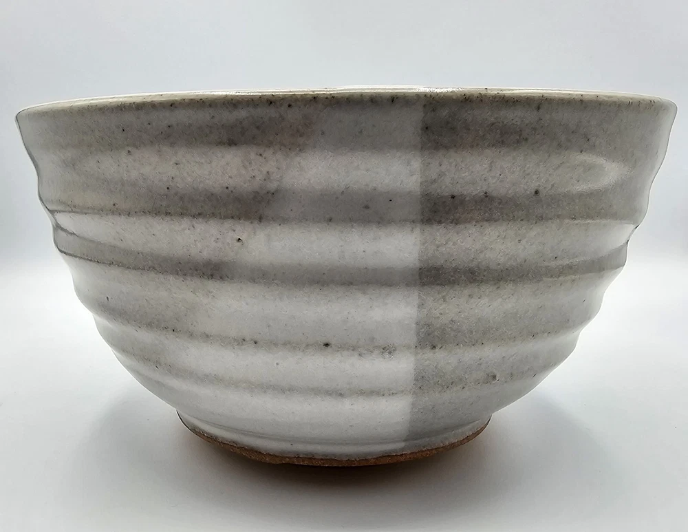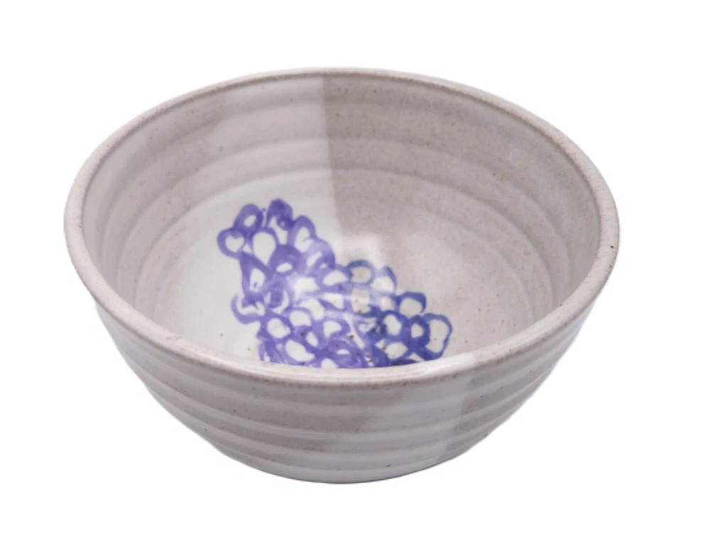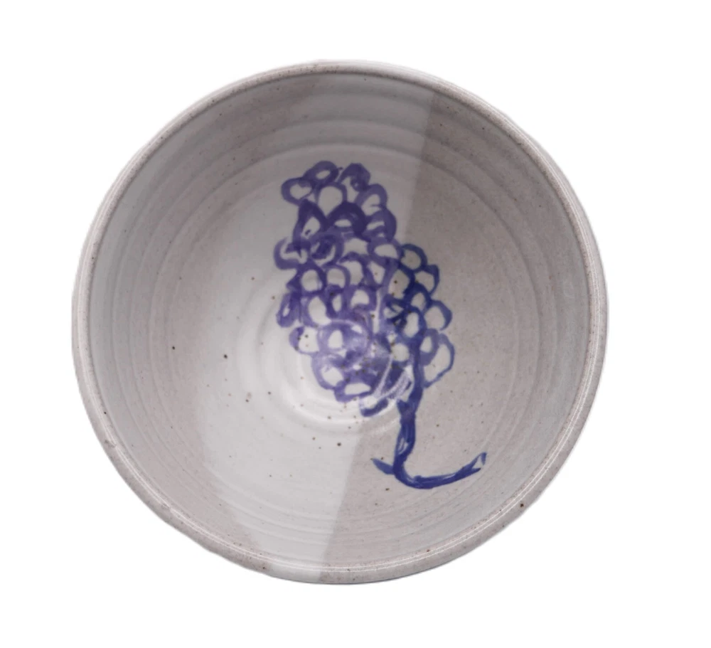This studio art pottery stoneware bowl features a speckled glaze that is two shades of gray. The bowl has an abstract grape cluster hand painted on the inside of the bowl. There are dark speckles in the glaze. The bowl measures approximately 7-13/16" across at the top lip, and 4-1/4" tall when measured from the outside of the bowl. A perfect size for mixing, as a fruit bowl, etc. The piece is in excellent "like new" condition. There are no cracks, chips or crazing. Please review the photos carefully so you are confident in your purchase. A quality piece of studio art pottery that will add artistic charm to your home décor. Thanks for looking!