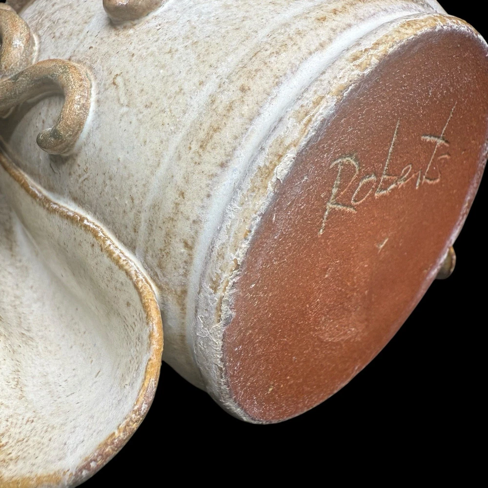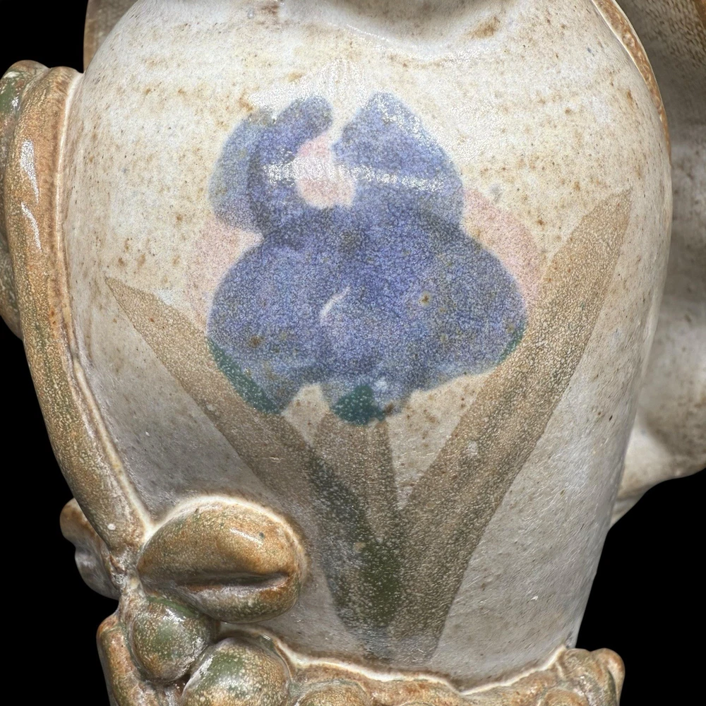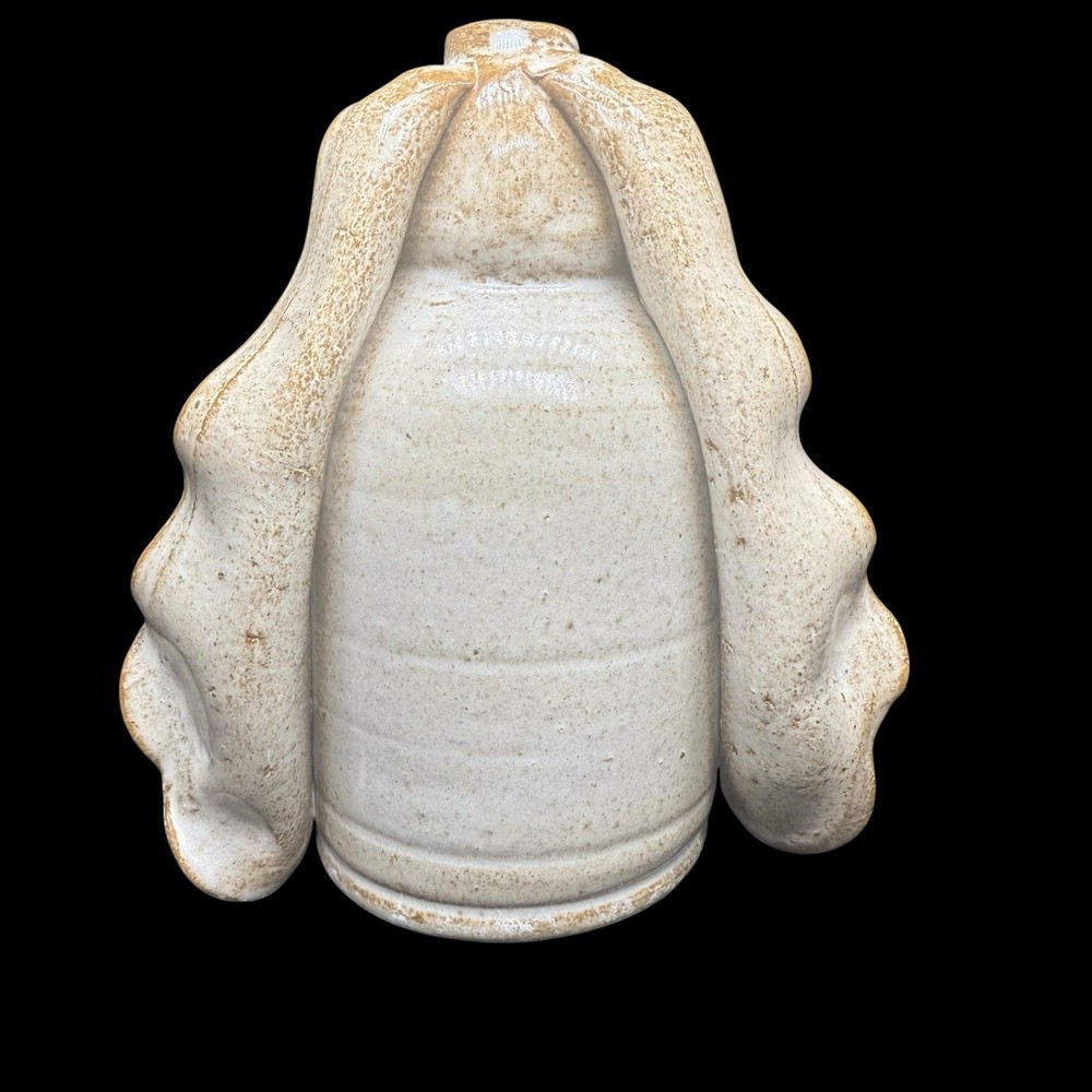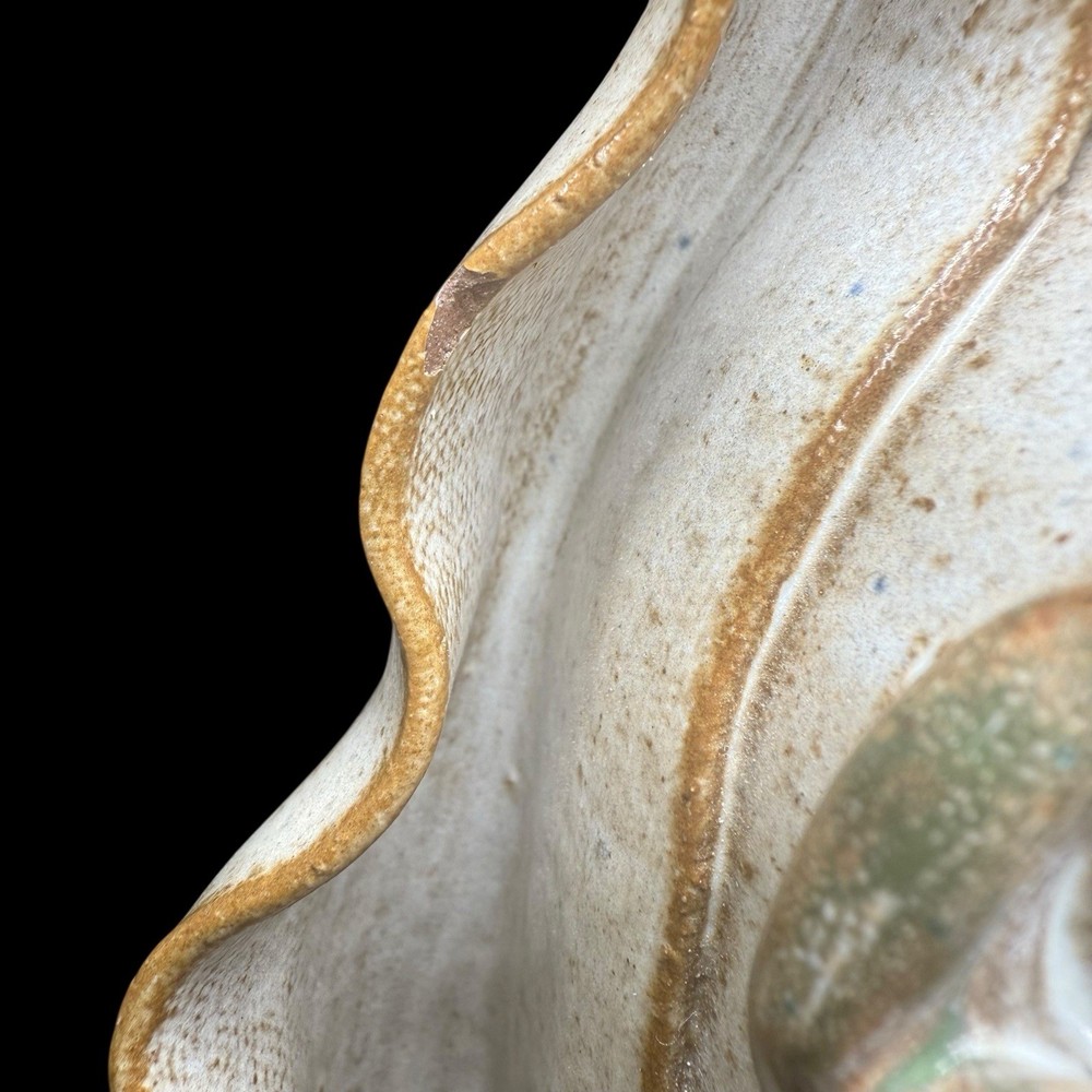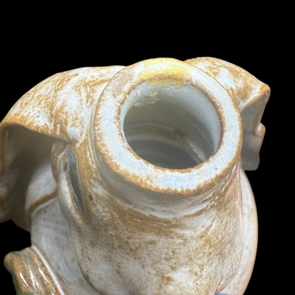 PLEASE NOTE PIECE HAS A SMALL CHIP ON 1 EAR (PHOTO #5) AND SOME WAX ON TOP OPENING (PHOTO #7) THERE ARE ALSO ROUGH EDGES ON THE BOTTOM OF THE PIECE, BUT I DON'T BELIEVE THEY ARE CHIPS. Piece measures 6.25"x5.5", base is 3" and opening is .75"