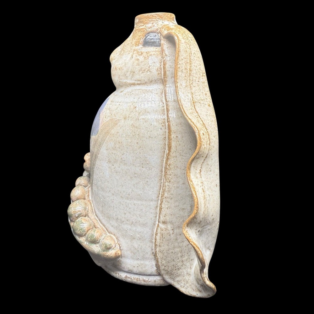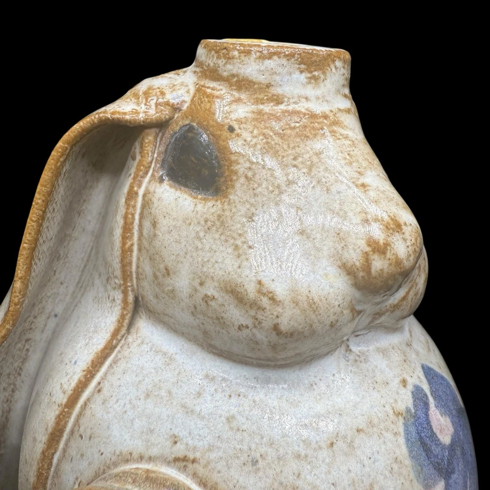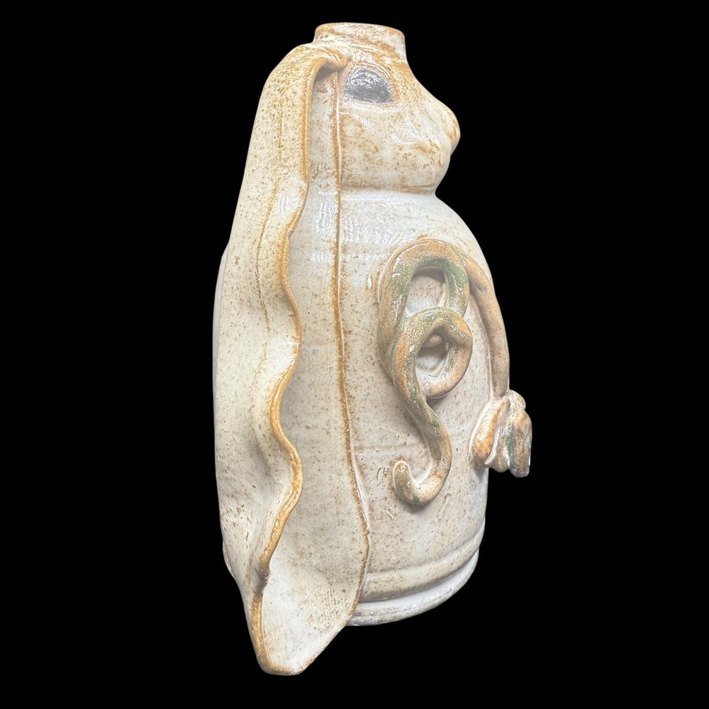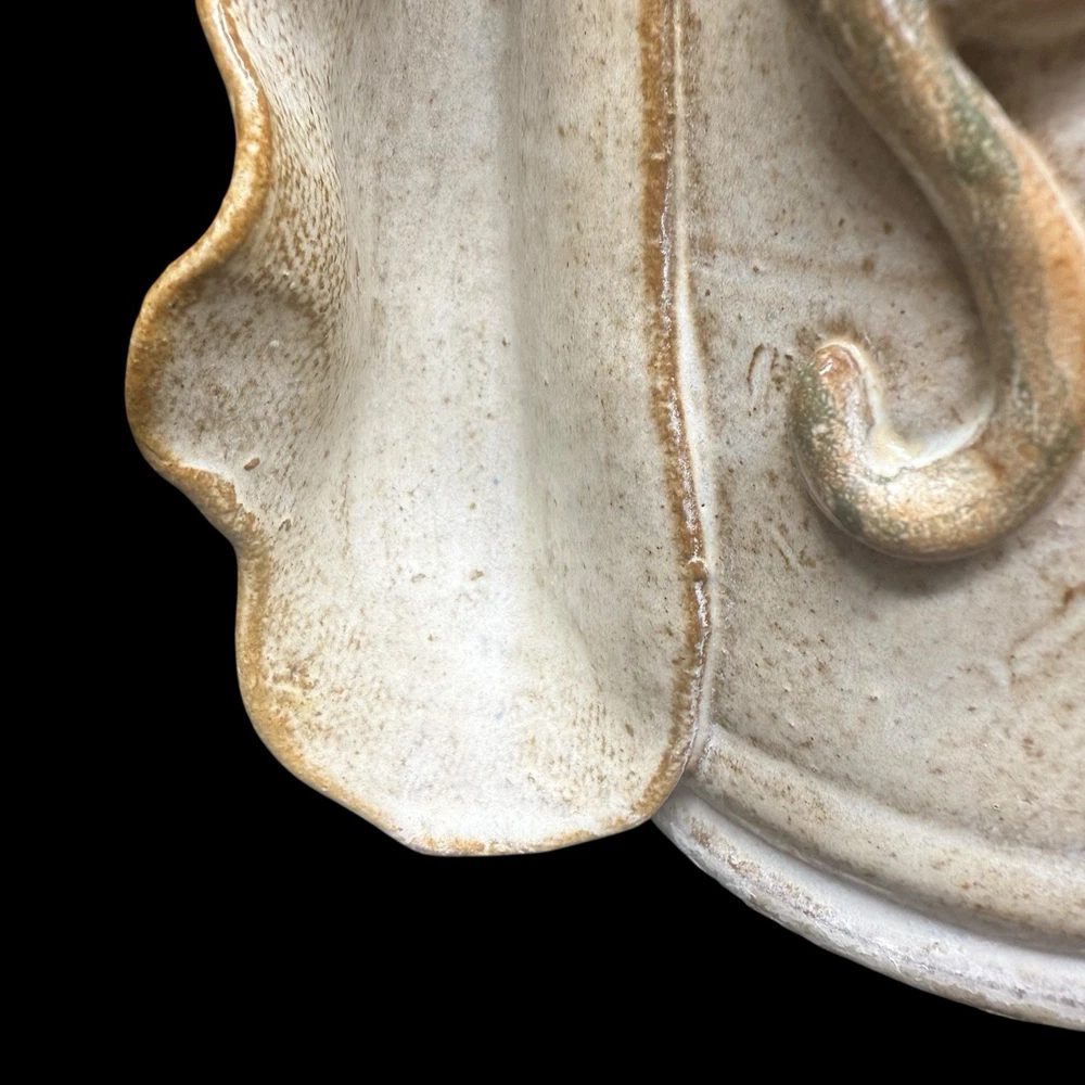 PLEASE NOTE PIECE HAS A SMALL CHIP ON 1 EAR (PHOTO #5) AND SOME WAX ON TOP OPENING (PHOTO #7) THERE ARE ALSO ROUGH EDGES ON THE BOTTOM OF THE PIECE, BUT I DON'T BELIEVE THEY ARE CHIPS. Piece measures 6.25"x5.5", base is 3" and opening is .75"