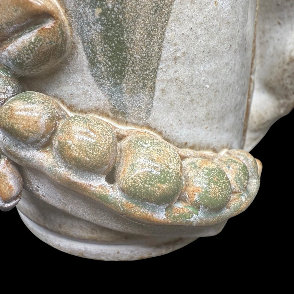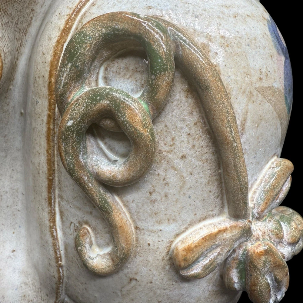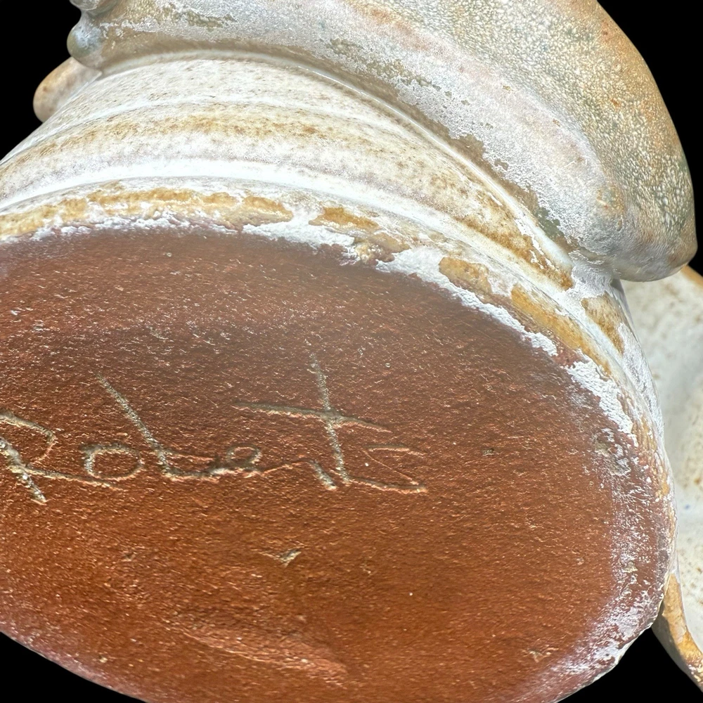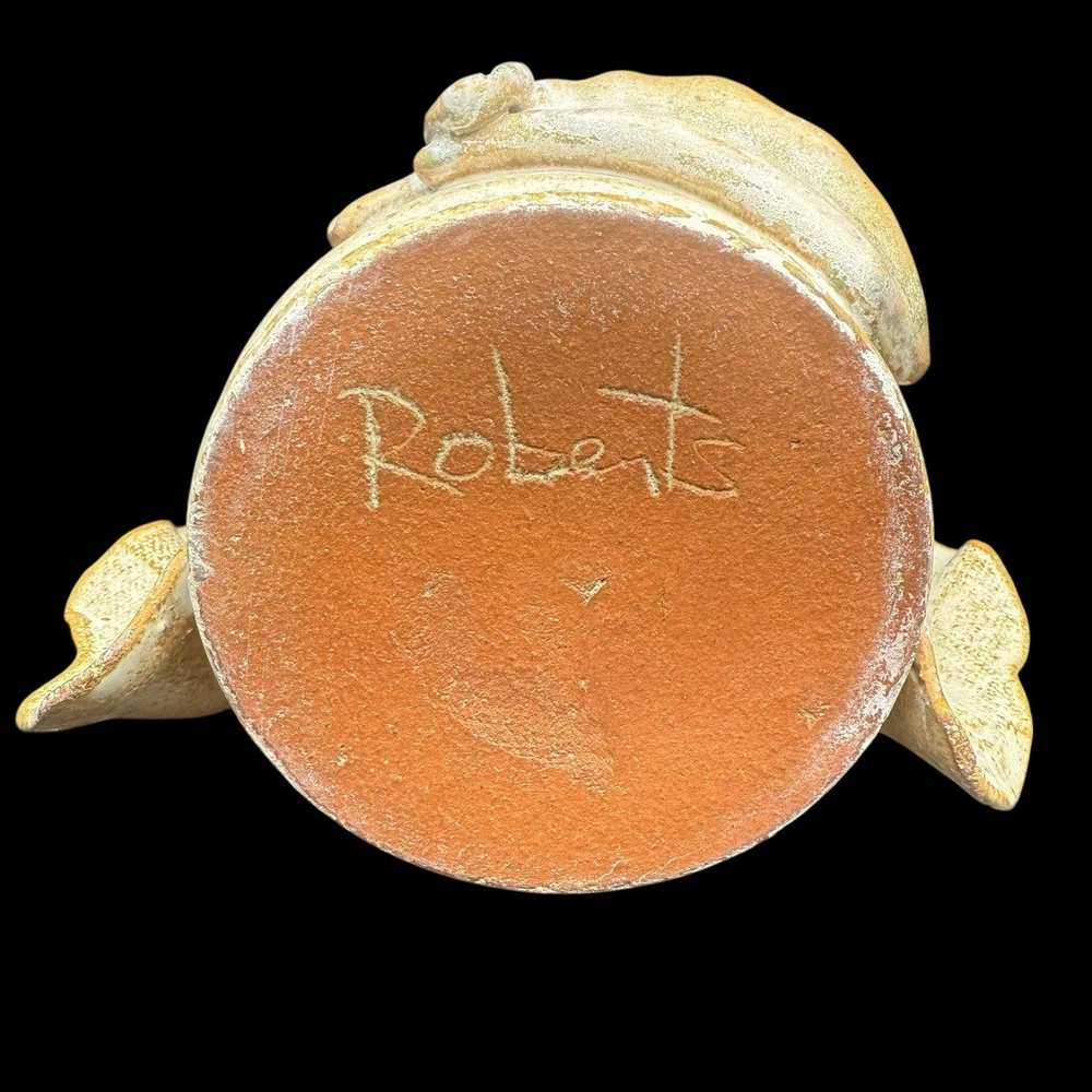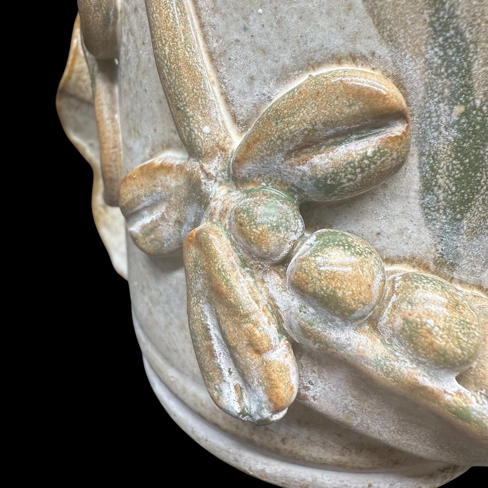 PLEASE NOTE PIECE HAS A SMALL CHIP ON 1 EAR (PHOTO #5) AND SOME WAX ON TOP OPENING (PHOTO #7) THERE ARE ALSO ROUGH EDGES ON THE BOTTOM OF THE PIECE, BUT I DON'T BELIEVE THEY ARE CHIPS. Piece measures 6.25"x5.5", base is 3" and opening is .75"