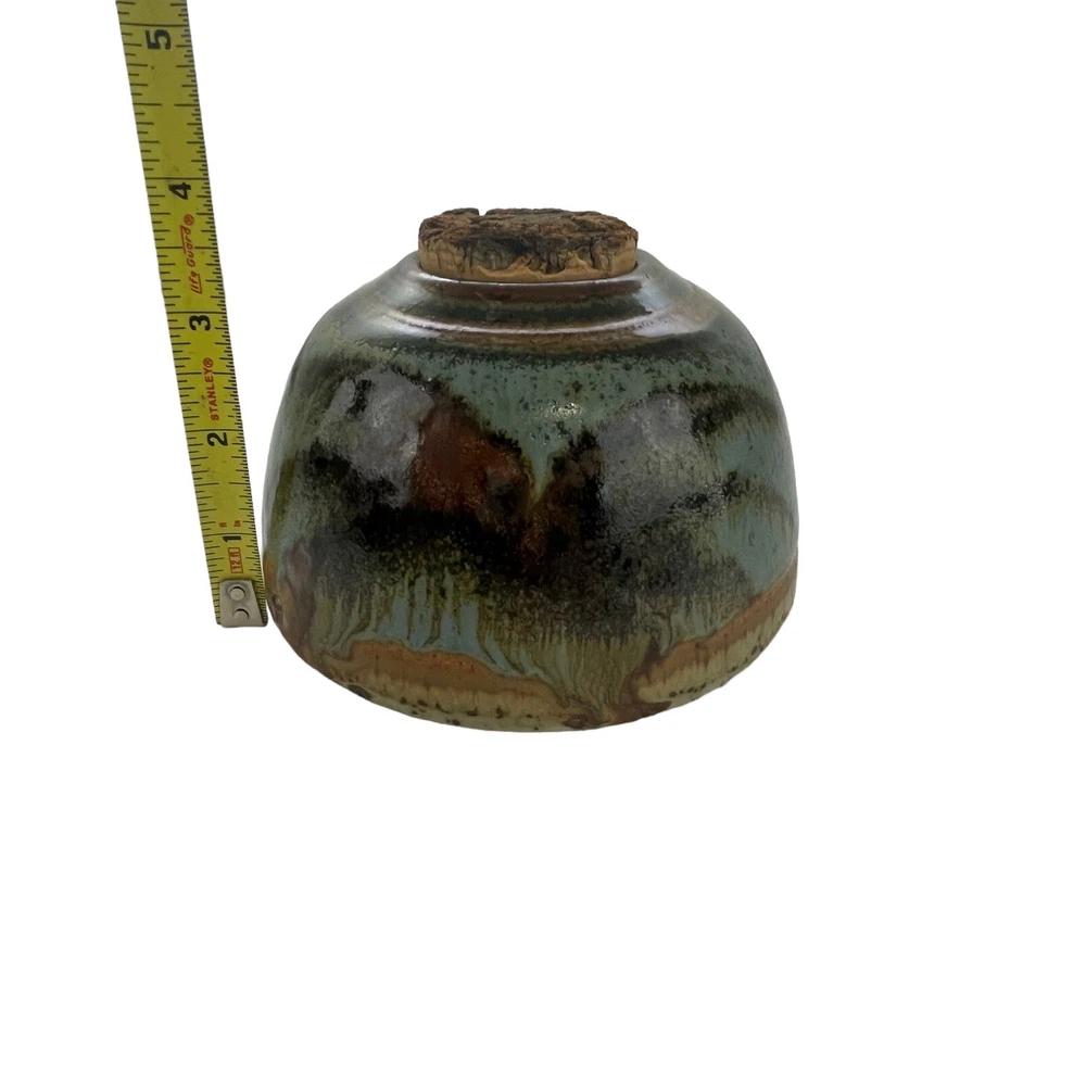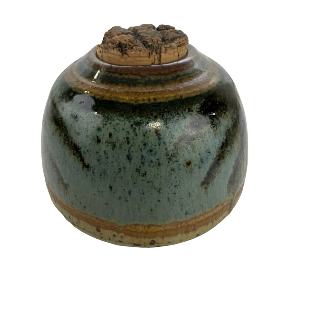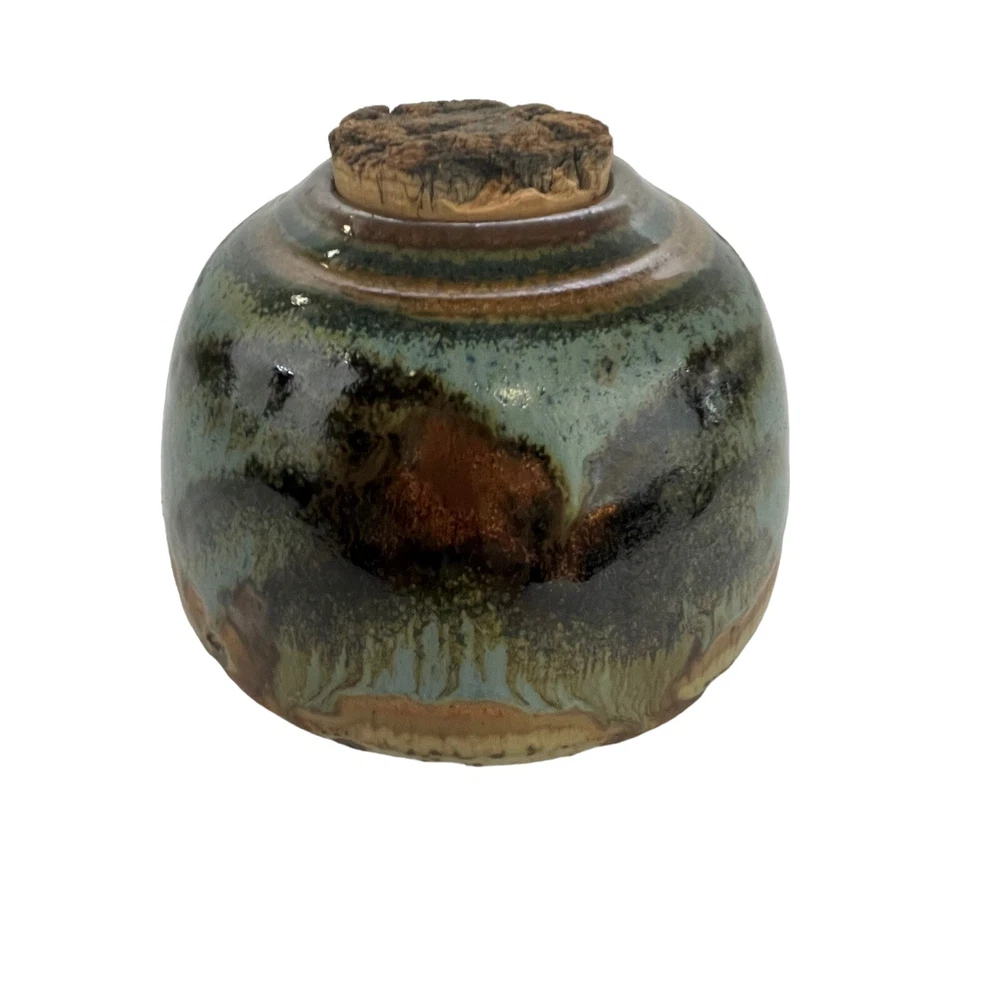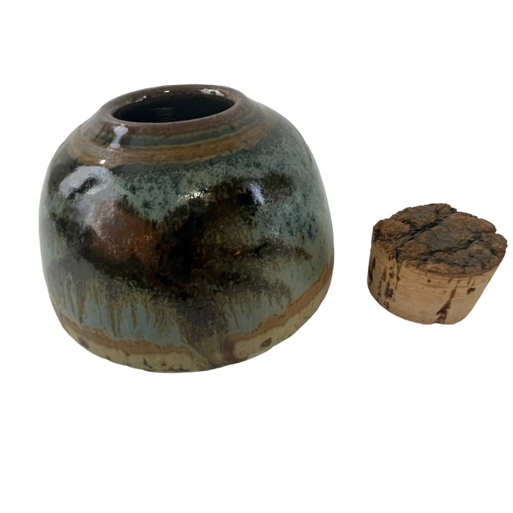 Studio Pottery Jar with Cork Lid Abstract Signed Blues /Green Looks Like Palm. 4*5 Signed looks like Person The item you see is the exact item you’ll receive, I do not use stock photos. Please look at all pictures carefully, as they are part of the description Make sure to check out my eBay store for similar or other items you may be interested in. Feel free to email me with any questions. I pack carefully and pad as needed to keep items safe. I ship within 2 business day from our non-smoking home. Thank you for looking!