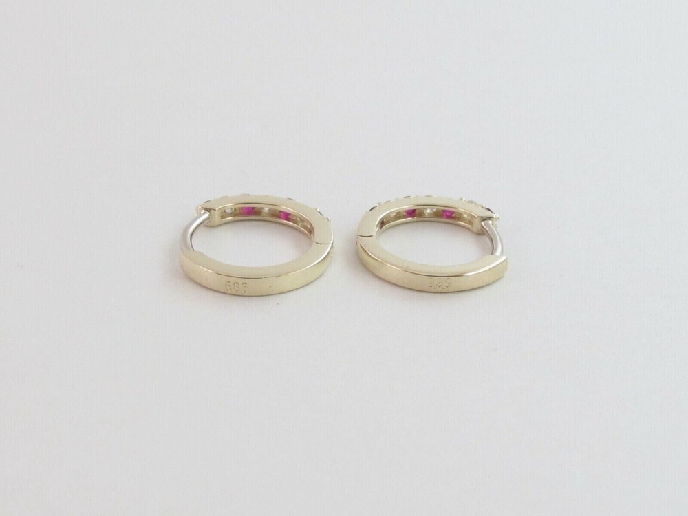 Stunning 14k Gold Plated Pink Simulated Ruby Huggie Hoop Earrings