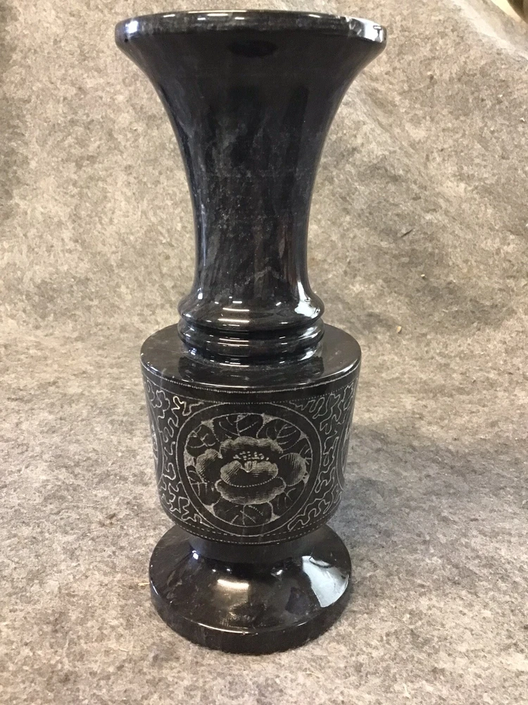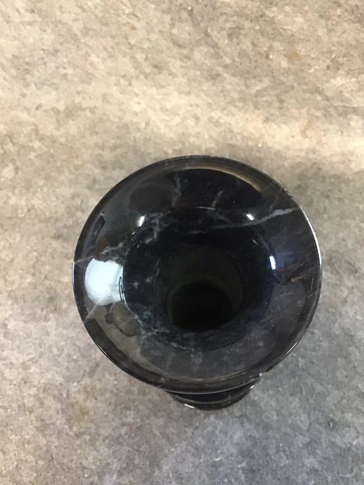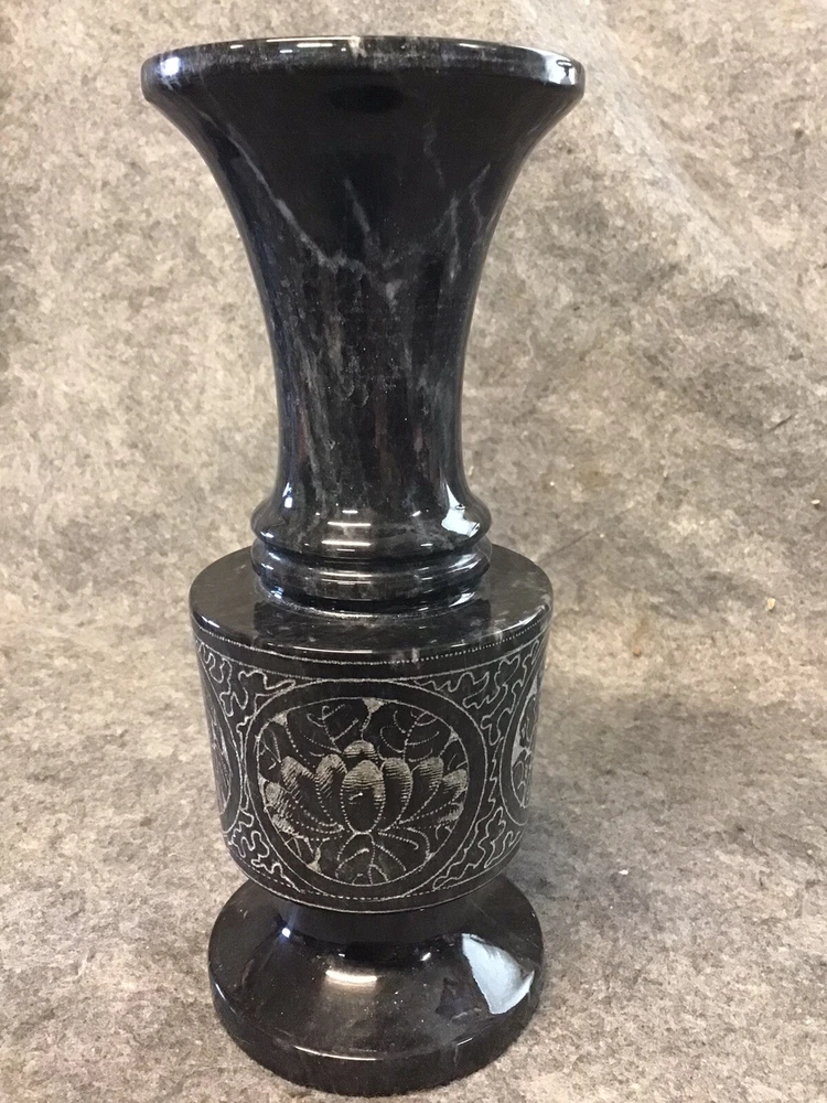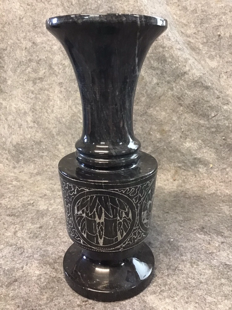Stunning Etched Black Marble Vase Handcrafted Excellent Condition 8”x3”