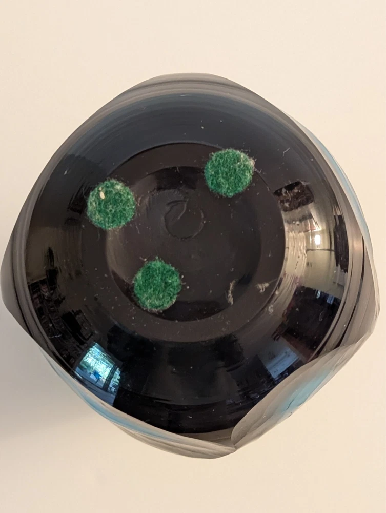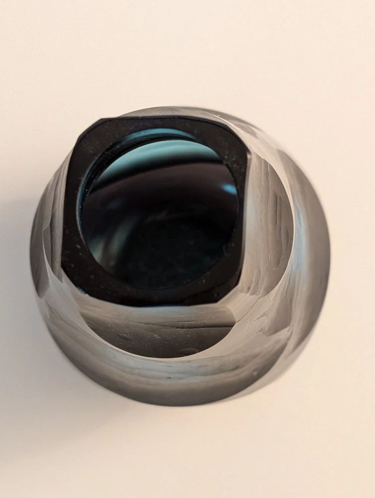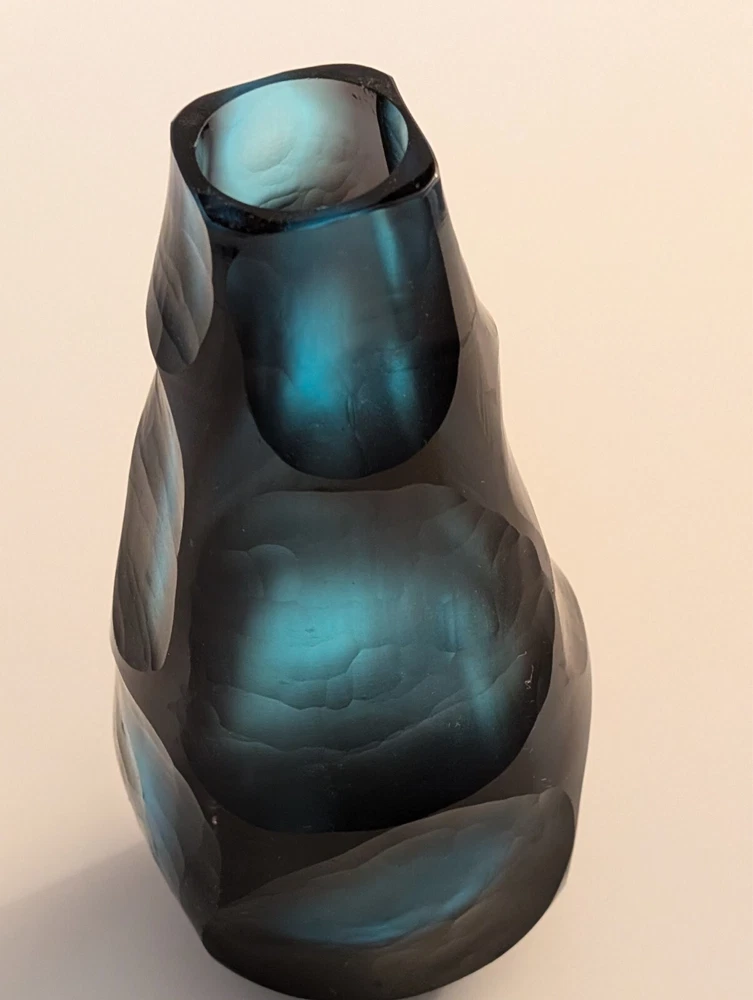 I love this MCM vase. It's arresting, in that it's extremely unusual. The saturated tones of cobalt blue and purple pop when placed by light. The vase comes alive and stands on its own as a piece of art, with or without flowers inside. It measures, 7 1/2 inches tall and 3 inches wide. In great condition. No chips or scratches.