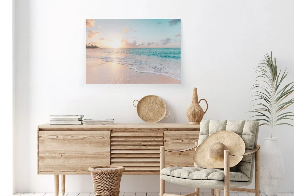 Stunning Silver Beach Sunset Sky Paint Unframed Canvas Print Australian Wall Art