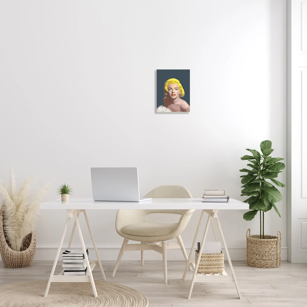 Proudly made in the USA, all of All of our wall plaques start off as high quality lithograph prints that are then mounted on durable 0.5 inch thick MDF wood. Each piece is hand finished and comes with a fresh layer of foil on the sides to give it a crisp clean look. It arrives ready to hang with no installation required, and comes with sturdy clear corners to keep it from damaging in transit.Features:Wall Art is Ready to Hang - No Installation or Hardware Needed. For Easy Set Up Lean or Layer Artwork on Shelf or Against Wall.All of our wall plaques start off as high quality lithograph prints that are then mounted on durable 0.5 inch thick MDF wood. Each piece is hand finished and comes with a fresh layer of foil on the sides to give it a crisp clean look. Made In USA.Artwork Ideal for any Free Shipping Over $49.99* Details Stupell Blonde Pop Vintage Marilyn Fashion Icon over Blue Wood Wall Art Product Description: Proudly made in the USA, all of All of our wall plaques start off as high quality lithograph prints that are then mounted on durable 0.5 inch thick MDF wood. Each piece is hand finished and comes with a fresh layer of foil on the sides to give it a crisp clean look. It arrives ready to hang with no installation required, and comes with sturdy clear corners to keep it from damaging in transit. Features: Wall Art is Ready to Hang - No Installation or Hardware Needed. For Easy Set Up Lean or Layer Artwork on Shelf or Against Wall. All of our wall plaques start off as high quality lithograph prints that are then mounted on durable 0.5 inch thick MDF wood. Each piece is hand finished and comes with a fresh layer of foil on the sides to give it a crisp clean look. Made In USA. Artwork Ideal for any Living Room, Den, Entryway, Bedroom, Office, Kitchen or Bathroom. Design by Chris Consani
