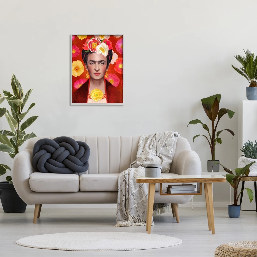 It is time to set up your room with of our fresh new 'Framed Giclee Textured Wall Art' pieces. You may have seen our Wooden or Canvas products, but our framed products are now available in three alluring styles: black, gray farmhouse and white. Our textured artwork will add more depth and dimension to any space. Each piece is mounted with a 1.5 inch thick wood grain frame that is ready to hang! Looking for a statement piece? We have oversized artwork available.Features: Wall Art is Ready to Hang - No Installation or Hardware Needed. For Easy Set Up Lean or Layer Artwork on Shelf or Against Wall.Our giclee prints are carefully mounted on a durable MDF backing, and then perfectly finished in a 1.5 inch thick woodgrain frame. Frame colors include black, gray farmhouse and white. Made In Free Shipping Over $49.99* Details Stupell Bold Frida Kahlo Portrait Floral Poppies Pattern Framed Wall Art, Design Product Description: It is time to set up your room with of our fresh new 'Framed Giclee Textured Wall Art' pieces. You may have seen our Wooden or Canvas products, but our framed products are now available in three alluring stylesblack, gray farmhouse and white. Our textured artwork will add more depth and dimension to any space. Each piece is mounted with a 1.5 inch thick wood grain frame that is ready to hang! Looking for a statement piece? We have oversized artwork available. Features: Wall Art is Ready to Hang - No Installation or Hardware Needed. For Easy Set Up Lean or Layer Artwork on Shelf or Against Wall. Our giclee prints are carefully mounted on a durable MDF backing, and then perfectly finished in a 1.5 inch thick woodgrain frame. Frame colors include black, gray farmhouse and white. Made In USA. Artwork Relates ToPlant; Person; Human; Flower; Blossom; Face; Flower Arrangement; Floral Design; Pattern Design by Diane Neukirch