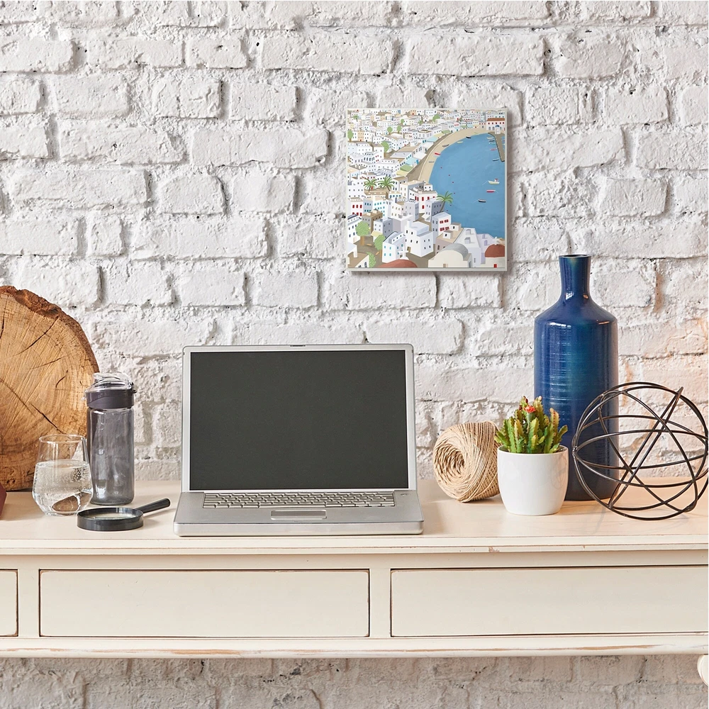 Proudly made in the USA, all of our wall plaques start off as high quality lithograph prints that are then mounted on durable MDF wood. Each piece is hand finished and comes with a fresh layer of foil on the sides to give it a crisp clean look. It arrives ready to hang with no installation required, and comes with sturdy clear corners to keep it from damaging in transit.Features:Wall Art is Ready to Hang - No Installation or Hardware Needed. For Easy Set Up Lean or Layer Artwork on Shelf or Against Wall.All of our wall plaques start off as high quality lithograph prints that are then mounted on durable 0.5 inch thick MDF wood. Each piece is hand finished and comes with a fresh layer of foil on the sides to give it a crisp clean look. Made In USA.Artwork Ideal for any Living Room, Den, Free Shipping Over $49.99* Details Stupell Coastal Beach Mykonos Cityscape Greek Destination Wood Wall Art, 12 x 12 Product Description: Proudly made in the USA, all of our wall plaques start off as high quality lithograph prints that are then mounted on durable MDF wood. Each piece is hand finished and comes with a fresh layer of foil on the sides to give it a crisp clean look. It arrives ready to hang with no installation required, and comes with sturdy clear corners to keep it from damaging in transit. Features: Wall Art is Ready to Hang - No Installation or Hardware Needed. For Easy Set Up Lean or Layer Artwork on Shelf or Against Wall. All of our wall plaques start off as high quality lithograph prints that are then mounted on durable 0.5 inch thick MDF wood. Each piece is hand finished and comes with a fresh layer of foil on the sides to give it a crisp clean look. Made In USA. Artwork Ideal for any Living Room, Den, Entryway, Bedroom, Office, Kitchen or Bathroom. Design by Carla Daly