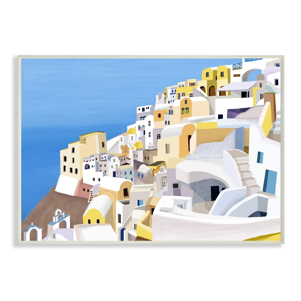 Proudly made in the USA, all of our wall plaques start off as high quality lithograph prints that are then mounted on durable MDF wood. Each piece is hand finished and comes with a fresh layer of foil on the sides to give it a crisp clean look. It arrives ready to hang with no installation required, and comes with sturdy clear corners to keep it from damaging in transit.Features:Wall Art is Ready to Hang - No Installation or Hardware Needed. For Easy Set Up Lean or Layer Artwork on Shelf or Against Wall.All of our wall plaques start off as high quality lithograph prints that are then mounted on durable 0.5 inch thick MDF wood. Each piece is hand finished and comes with a fresh layer of foil on the sides to give it a crisp clean look. Made In USA.Artwork Ideal for any Living Room, Den, Free Shipping Over $49.99* Details Stupell Coastal Greek Cliffside City White Yellow Buildings Wood Wall Art Product Description: Proudly made in the USA, all of our wall plaques start off as high quality lithograph prints that are then mounted on durable MDF wood. Each piece is hand finished and comes with a fresh layer of foil on the sides to give it a crisp clean look. It arrives ready to hang with no installation required, and comes with sturdy clear corners to keep it from damaging in transit. Features: Wall Art is Ready to Hang - No Installation or Hardware Needed. For Easy Set Up Lean or Layer Artwork on Shelf or Against Wall. All of our wall plaques start off as high quality lithograph prints that are then mounted on durable 0.5 inch thick MDF wood. Each piece is hand finished and comes with a fresh layer of foil on the sides to give it a crisp clean look. Made In USA. Artwork Ideal for any Living Room, Den, Entryway, Bedroom, Office, Kitchen or Bathroom. Design by Carla Daly