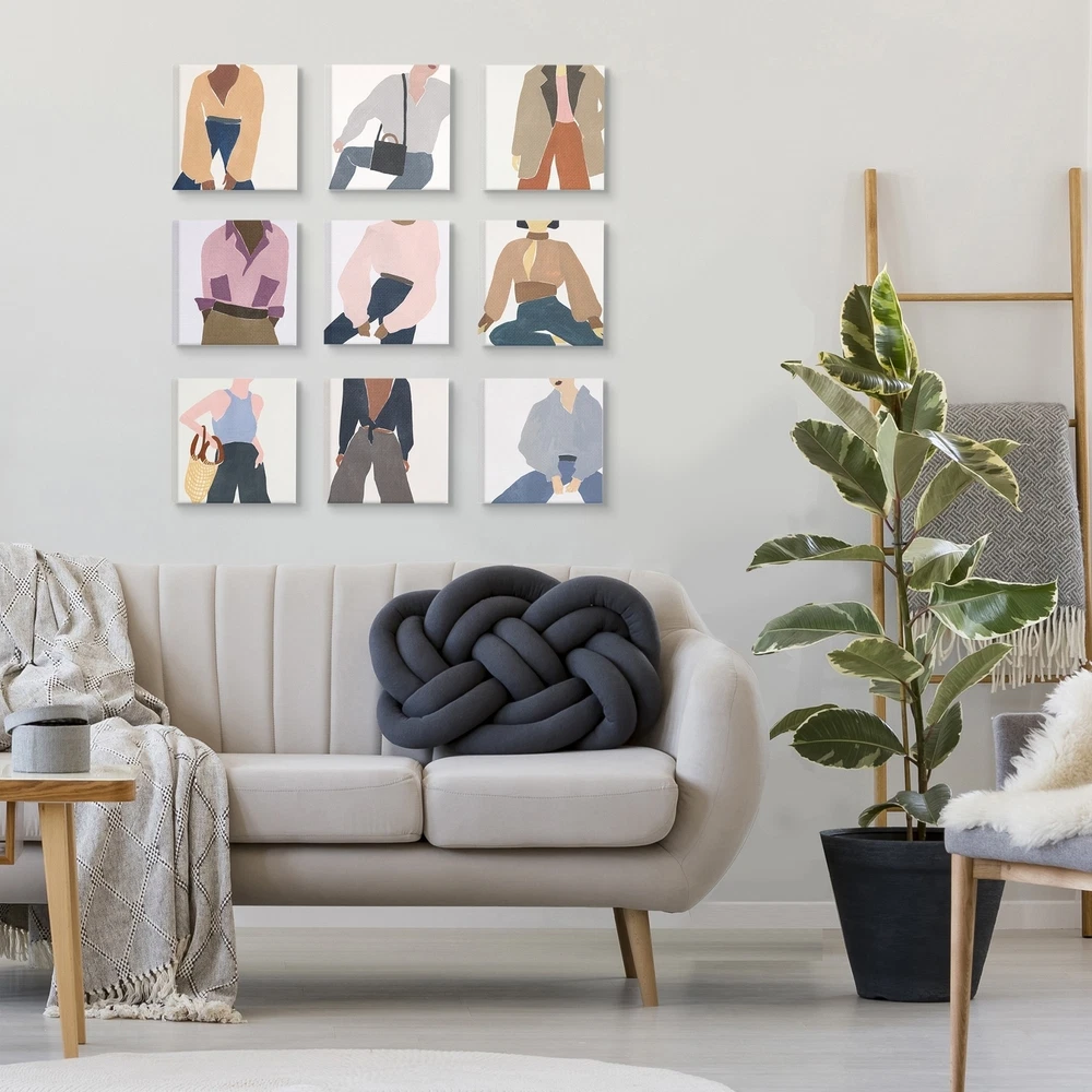 Proudly made in the USA! Our canvas multi piece sets are our newest and most distinguished offering yet! Each panel is mounted on sturdy 1.5 inch frame. Our vivid canvas is hand cut, then stretched and comes ready to hang. At this size, and with multiple pieces, it is sure to be a focal point of the room.Features:Wall Art is Ready to Hang - No Installation or Hardware Needed. For Easy Set Up Lean or Layer Artwork on Shelf or Against Wall.Our stretched canvas is created with the highest standards. We use only the highest quality inks and canvas on our in house Mimaki printers, and then hand cut and stretch each piece over a 1.5 inch thick wooden frame for hanging. Made In USA.Artwork Ideal for any Living Room, Den, Entryway, Bedroom, Office, Kitchen or Bathroom.Design by Melissa Wang Free Shipping Over $49.99* Details Stupell Fashion Styles and Female Figures Paintings, 9pc Multi Piece Canvas Wall Product Description: Proudly made in the USA! Our canvas multi piece sets are our newest and most distinguished offering yet! Each panel is mounted on sturdy 1.5 inch frame. Our vivid canvas is hand cut, then stretched and comes ready to hang. At this size, and with multiple pieces, it is sure to be a focal point of the room. Features: Wall Art is Ready to Hang - No Installation or Hardware Needed. For Easy Set Up Lean or Layer Artwork on Shelf or Against Wall. Our stretched canvas is created with the highest standards. We use only the highest quality inks and canvas on our in house Mimaki printers, and then hand cut and stretch each piece over a 1.5 inch thick wooden frame for hanging. Made In USA. Artwork Ideal for any Living Room, Den, Entryway, Bedroom, Office, Kitchen or Bathroom. Design by Melissa Wang