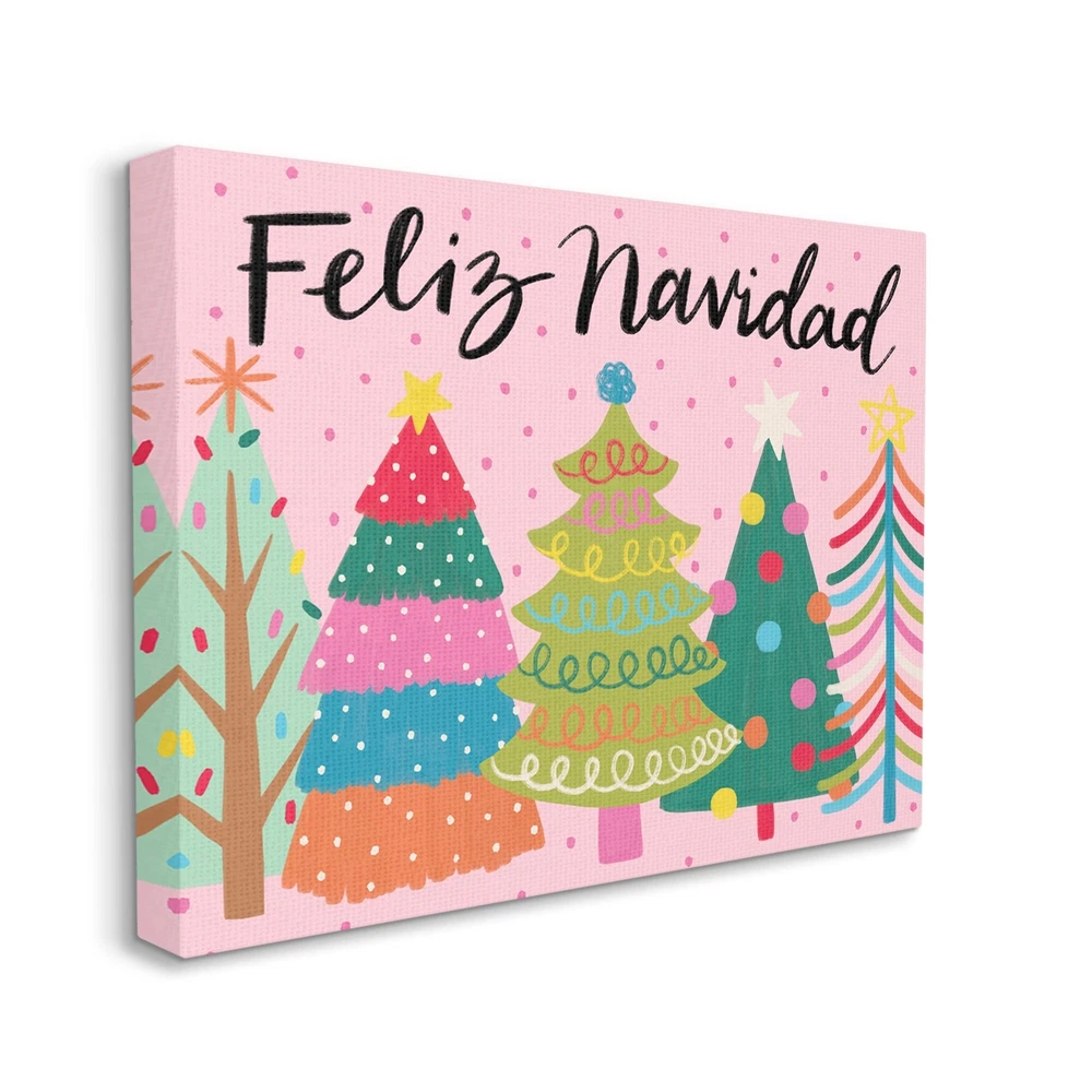 Proudly made in the USA, Our stretched canvas is created with the highest standards. We use only the highest quality inks and canvas on our in house Mimaki printers, and then hand cut and stretch each piece over a 1.5 inch thick wooden frame for hanging. The art comes ready to hang with no installation required.Features:Wall Art is Ready to Hang - No Installation or Hardware Needed. For Easy Set Up Lean or Layer Artwork on Shelf or Against Wall.Our stretched canvas is created with the highest standards. We use only the highest quality inks and canvas on our in house Mimaki printers, and then hand cut and stretch each piece over a 1.5 inch thick wooden frame for hanging. Made In USA.Artwork Ideal for any Living Room, Den, Entryway, Bedroom, Office, Kitchen or Bathroom.Design by Deborah Free Shipping Over $49.99* Details Stupell Feliz Navidad Whimsical Patterned Christmas Trees Ornaments Canvas Wall Product Description: Proudly made in the USA, Our stretched canvas is created with the highest standards. We use only the highest quality inks and canvas on our in house Mimaki printers, and then hand cut and stretch each piece over a 1.5 inch thick wooden frame for hanging. The art comes ready to hang with no installation required. Features: Wall Art is Ready to Hang - No Installation or Hardware Needed. For Easy Set Up Lean or Layer Artwork on Shelf or Against Wall. Our stretched canvas is created with the highest standards. We use only the highest quality inks and canvas on our in house Mimaki printers, and then hand cut and stretch each piece over a 1.5 inch thick wooden frame for hanging. Made In USA. Artwork Ideal for any Living Room, Den, Entryway, Bedroom, Office, Kitchen or Bathroom. Design by Deborah Curiel