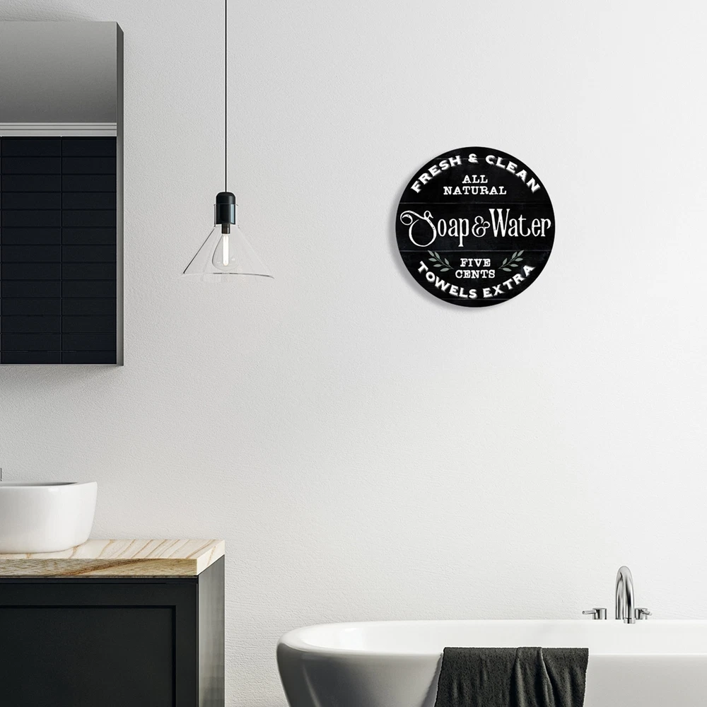 Proudly made in the USA, all of our wall plaques start off as high quality lithograph prints that are then mounted on durable 0.5 inch thick MDF wood. Each piece is hand finished and comes with a fresh layer of white foil on the sides to give it a crisp clean look. Art arrives ready to hang with no installation required.Features:Add a unique touch to any home with our Circular Shaped Wall Art. All of our wall plaques start off as high quality lithograph prints that are then mounted on durable 0.5 inch thick MDF wood. Each piece is hand finished and comes with a fresh layer of foil on the sides to give it a crisp clean look. Made In USA.Wall Art is Ready to Hang - No Installation or Hardware Needed. For Easy Set Up Use A Picture Stand to Lean or Layer Artwork on Shelf or Against Free Shipping Over $49.99* Details Stupell Fresh & Clean Bathroom Sign Vintage Soap and Water, 12 x 12, Design By Product Description: Proudly made in the USA, all of our wall plaques start off as high quality lithograph prints that are then mounted on durable 0.5 inch thick MDF wood. Each piece is hand finished and comes with a fresh layer of white foil on the sides to give it a crisp clean look. Art arrives ready to hang with no installation required. Features: Add a unique touch to any home with our Circular Shaped Wall Art. All of our wall plaques start off as high quality lithograph prints that are then mounted on durable 0.5 inch thick MDF wood. Each piece is hand finished and comes with a fresh layer of foil on the sides to give it a crisp clean look. Made In USA. Wall Art is Ready to Hang - No Installation or Hardware Needed. For Easy Set Up Use A Picture Stand to Lean or Layer Artwork on Shelf or Against Wall. Artwork Ideal for any Living Room, Den, Entryway, Bedroom, Office, Kitchen or Bathroom. Design by Lil' Rue