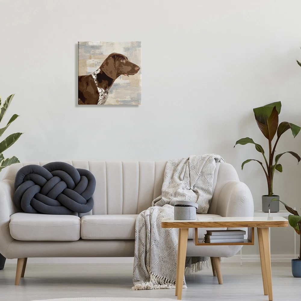 Proudly made in the USA, Our stretched canvas is created with the highest standards. We use only the highest quality inks and canvas on our in house Mimaki printers, and then hand cut and stretch each piece over a 1.5 inch thick wooden frame for hanging. The art comes ready to hang with no installation required.Features:Wall Art is Ready to Hang - No Installation or Hardware Needed. For Easy Set Up Lean or Layer Artwork on Shelf or Against Wall.Our stretched canvas is created with the highest standards. We use only the highest quality inks and canvas on our in house Mimaki printers, and then hand cut and stretch each piece over a 1.5 inch thick wooden frame for hanging. Made In USA.Artwork Ideal for any Living Room, Den, Entryway, Bedroom, Office, Kitchen or Bathroom.Design by Keri Rodgers Free Shipping Over $49.99* Details Stupell Gazing Pointer Dog Vintage Dog Portrait Canvas Wall Art - Brown Product Description: Proudly made in the USA, Our stretched canvas is created with the highest standards. We use only the highest quality inks and canvas on our in house Mimaki printers, and then hand cut and stretch each piece over a 1.5 inch thick wooden frame for hanging. The art comes ready to hang with no installation required. Features: Wall Art is Ready to Hang - No Installation or Hardware Needed. For Easy Set Up Lean or Layer Artwork on Shelf or Against Wall. Our stretched canvas is created with the highest standards. We use only the highest quality inks and canvas on our in house Mimaki printers, and then hand cut and stretch each piece over a 1.5 inch thick wooden frame for hanging. Made In USA. Artwork Ideal for any Living Room, Den, Entryway, Bedroom, Office, Kitchen or Bathroom. Design by Keri Rodgers