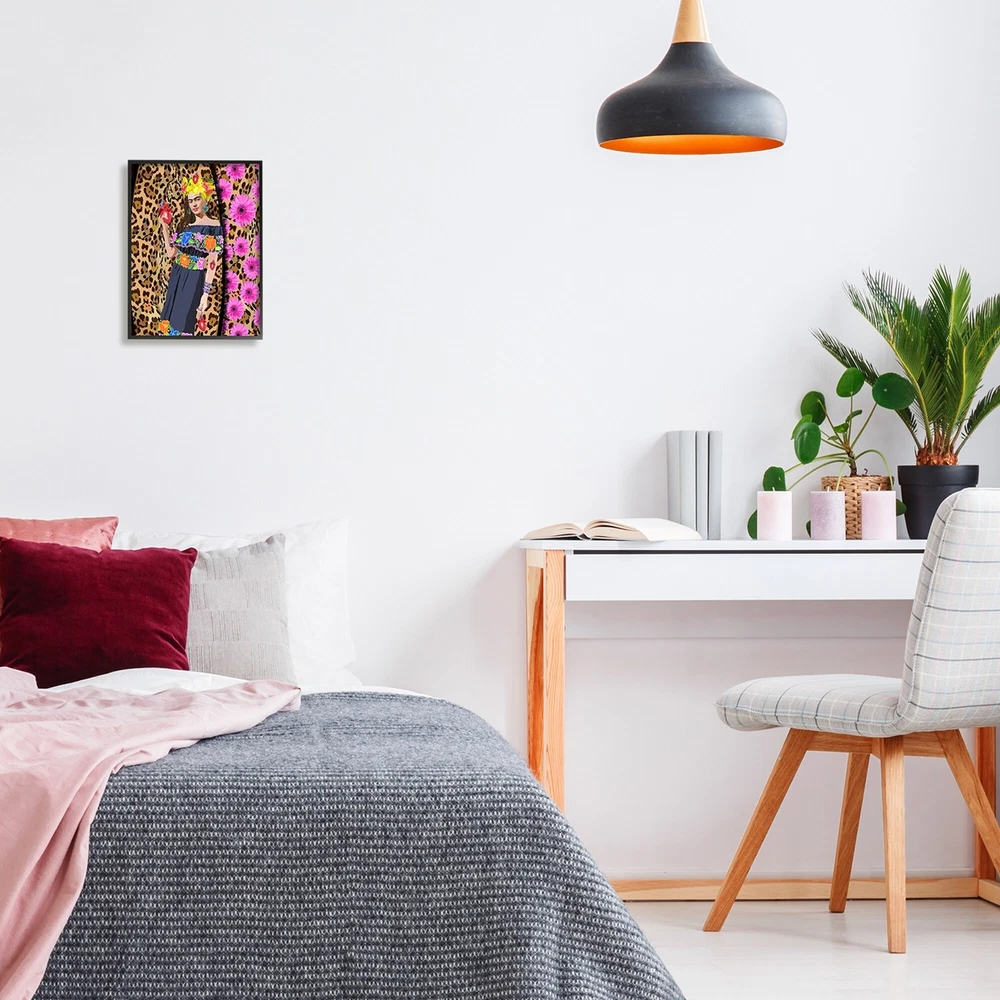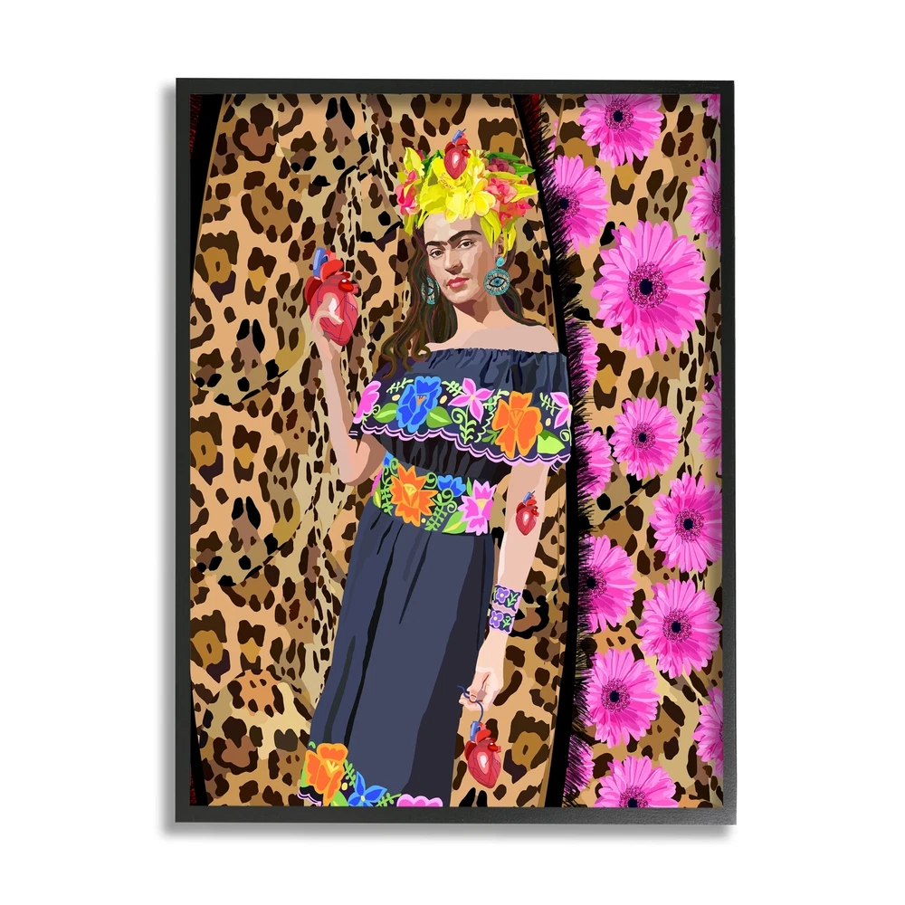 It is time to set up your room with of our fresh new 'Framed Giclee Textured Wall Art' pieces. You may have seen our Wooden or Canvas products, but our framed products are now available in three alluring styles: black, gray farmhouse and white. Our textured artwork will add more depth and dimension to any space. Each piece is mounted with a 1.5 inch thick ebony wood grain frame that is ready to hang! Looking for a statement piece? We have oversized artwork available.Features: Wall Art is Ready to Hang - No Installation or Hardware Needed. For Easy Set Up Lean or Layer Artwork on Shelf or Against Wall.Our giclée prints are carefully mounted on a durable MDF backing, and then perfectly finished in a 1.5 inch thick woodgrain frame. Frame colors include black, gray farmhouse and white. Made In Free Shipping Over $49.99* Details Stupell Glamorous Frida Standing Leopard Pattern Bold Floral Framed Wall Art - Product Description: It is time to set up your room with of our fresh new 'Framed Giclee Textured Wall Art' pieces. You may have seen our Wooden or Canvas products, but our framed products are now available in three alluring stylesblack, gray farmhouse and white. Our textured artwork will add more depth and dimension to any space. Each piece is mounted with a 1.5 inch thick ebony wood grain frame that is ready to hang! Looking for a statement piece? We have oversized artwork available. Features: Wall Art is Ready to Hang - No Installation or Hardware Needed. For Easy Set Up Lean or Layer Artwork on Shelf or Against Wall. Our giclée prints are carefully mounted on a durable MDF backing, and then perfectly finished in a 1.5 inch thick woodgrain frame. Frame colors include black, gray farmhouse and white. Made In USA. Artwork Ideal for any Living Room, Den, Entryway, Bedroom, Office, Kitchen or Bathroom. Design By Lynnda Rakos