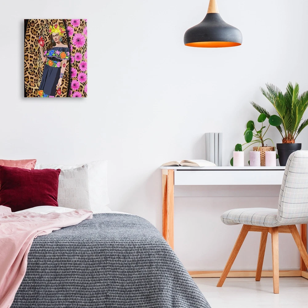 Proudly made in the USA, Our stretched canvas is created with the highest standards. We use only the highest quality inks and canvas on our in house Mimaki printers, and then hand cut and stretch each piece over a 1.5 inch thick wooden frame for hanging. The art comes ready to hang with no installation required.Features:Wall Art is Ready to Hang - No Installation or Hardware Needed. For Easy Set Up Lean or Layer Artwork on Shelf or Against Wall.Our stretched canvas is created with the highest standards. We use only the highest quality inks and canvas on our in house Mimaki printers, and then hand cut and stretch each piece over a 1.5 inch thick wooden frame for hanging. Made In USA.Artwork Ideal for any Living Room, Den, Entryway, Bedroom, Office, Kitchen or Bathroom.Design by Lynnda Rakos Free Shipping Over $49.99* Details Stupell Glamorous Frida Standing Leopard Pattern Bold Floral Canvas Wall Art Product Description: Proudly made in the USA, Our stretched canvas is created with the highest standards. We use only the highest quality inks and canvas on our in house Mimaki printers, and then hand cut and stretch each piece over a 1.5 inch thick wooden frame for hanging. The art comes ready to hang with no installation required. Features: Wall Art is Ready to Hang - No Installation or Hardware Needed. For Easy Set Up Lean or Layer Artwork on Shelf or Against Wall. Our stretched canvas is created with the highest standards. We use only the highest quality inks and canvas on our in house Mimaki printers, and then hand cut and stretch each piece over a 1.5 inch thick wooden frame for hanging. Made In USA. Artwork Ideal for any Living Room, Den, Entryway, Bedroom, Office, Kitchen or Bathroom. Design by Lynnda Rakos